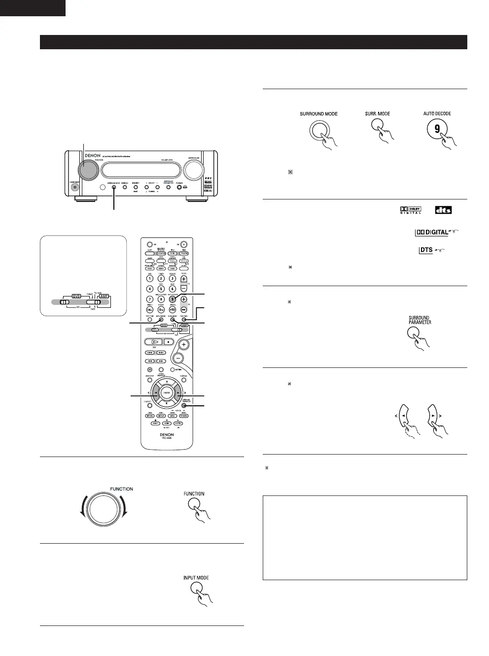 • DTS signals can only be played in the Auto decode (DTS), Direct,