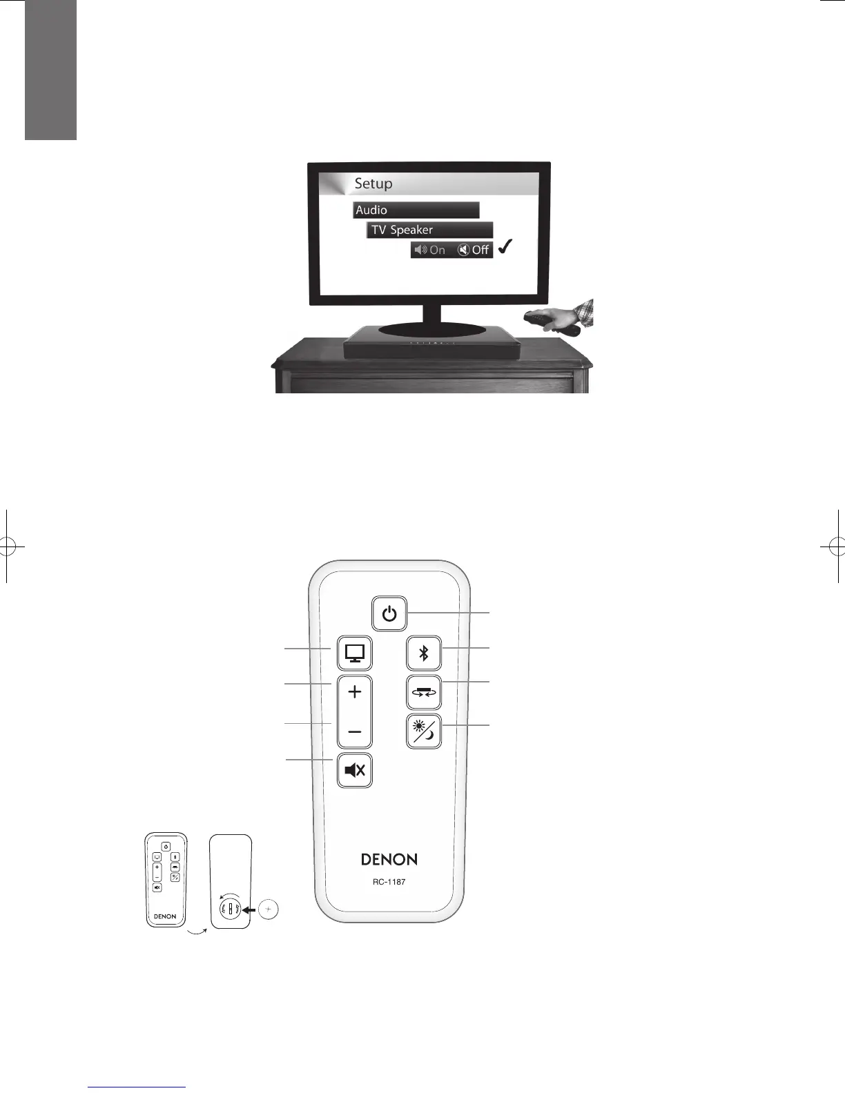 Disable your television’s built-in speakers when using DHT-T110. Usually, this is accomplished via an on-screen setup menu on