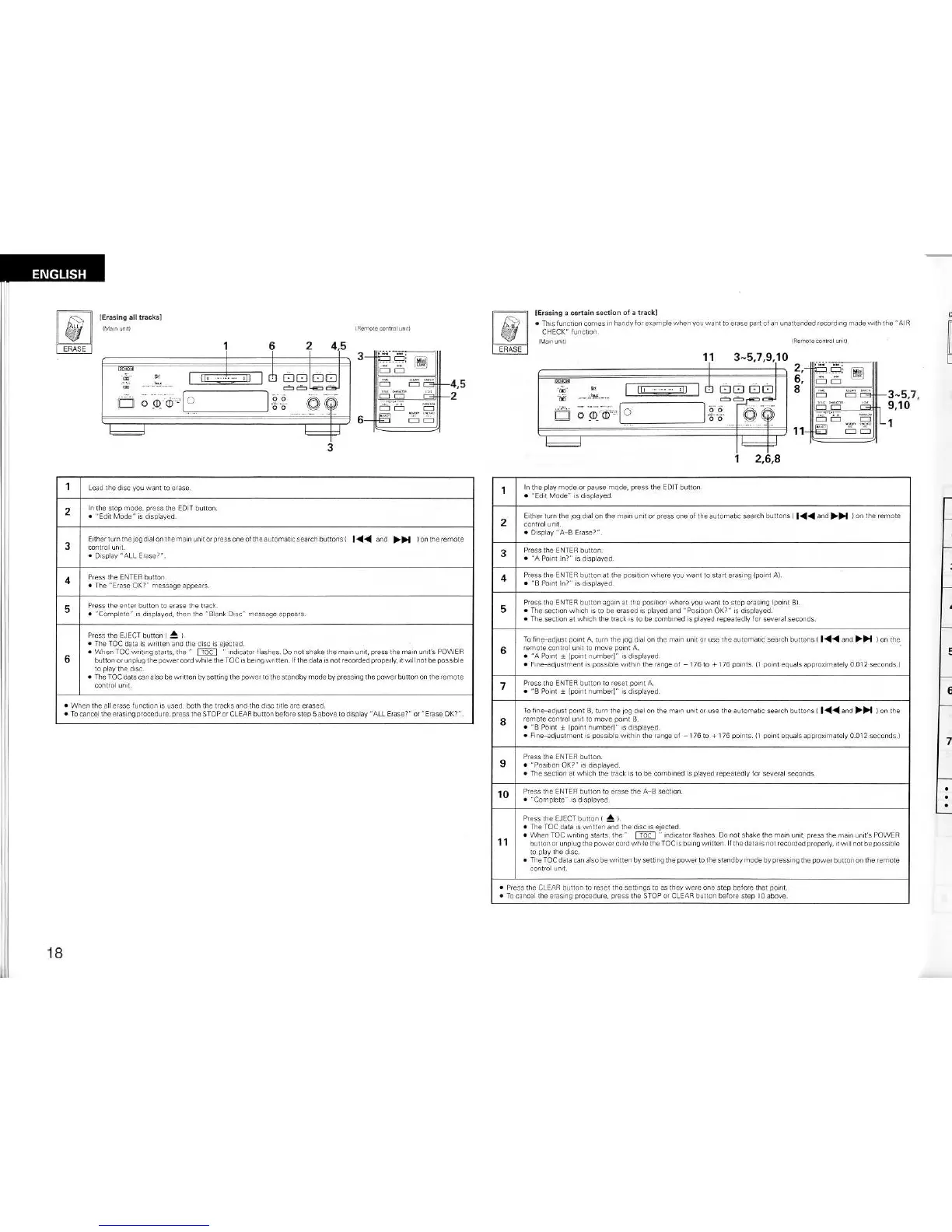 Denon DMD-1000 - Erasing Content from MiniDiscs; Erasing All Tracks on a Disc; Erasing Specific Track Sections