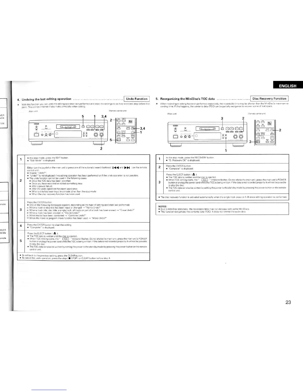 Denon DMD-1000 - Editing Revisions and Data Management; Undoing the Last Editing Operation; Reorganizing TOC Data