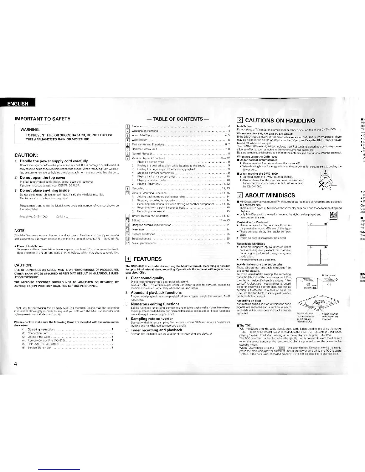 Denon DMD-1000 - Product Features and Basic Information; DMD-1000 Key Features