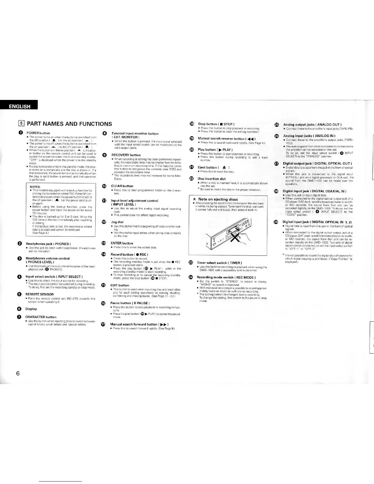 Denon DMD-1000 - Part Names and Functions; Main Unit Controls Explained; Remote Control Unit Functions
