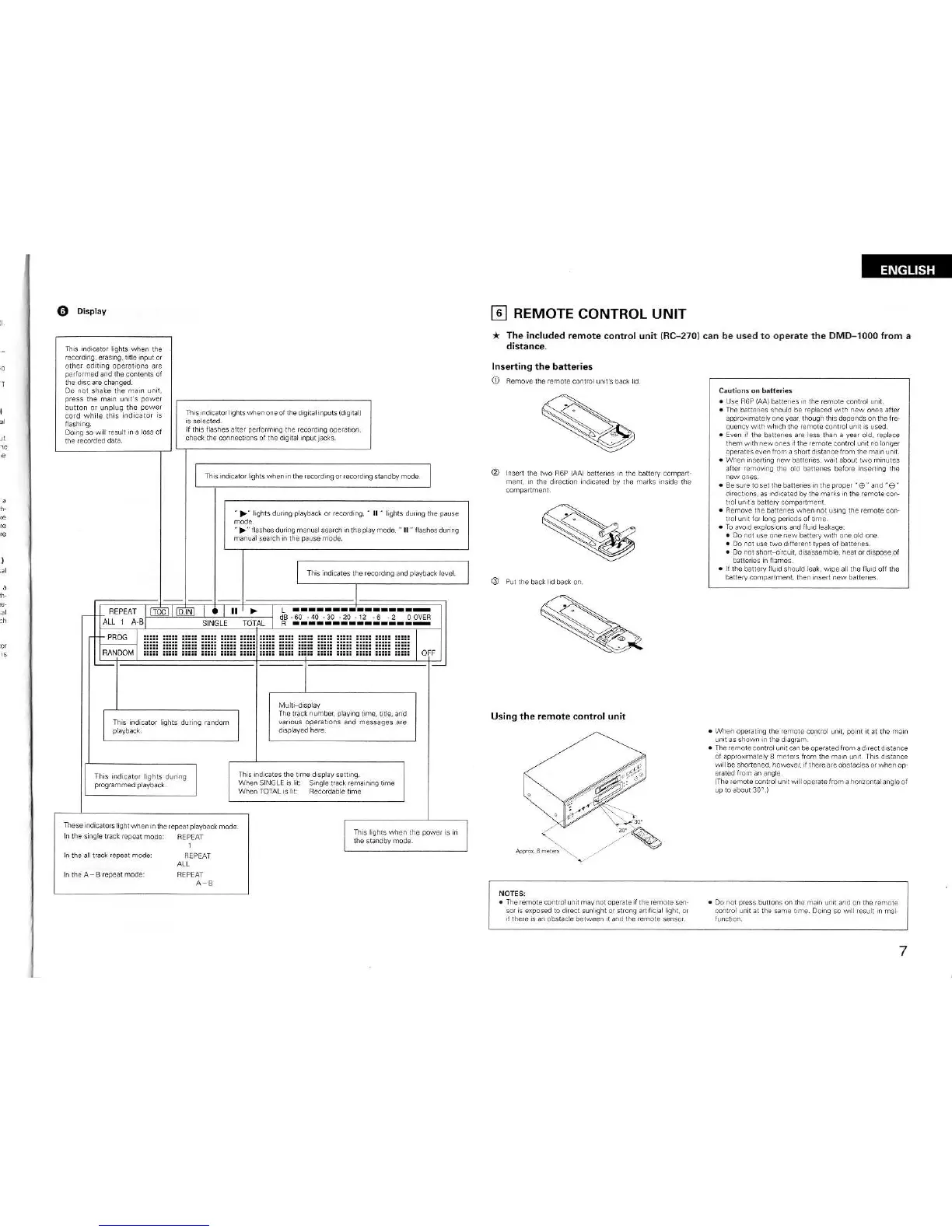 Denon DMD-1000 - Remote Control Unit; Inserting the Batteries; Using the Remote Control Unit