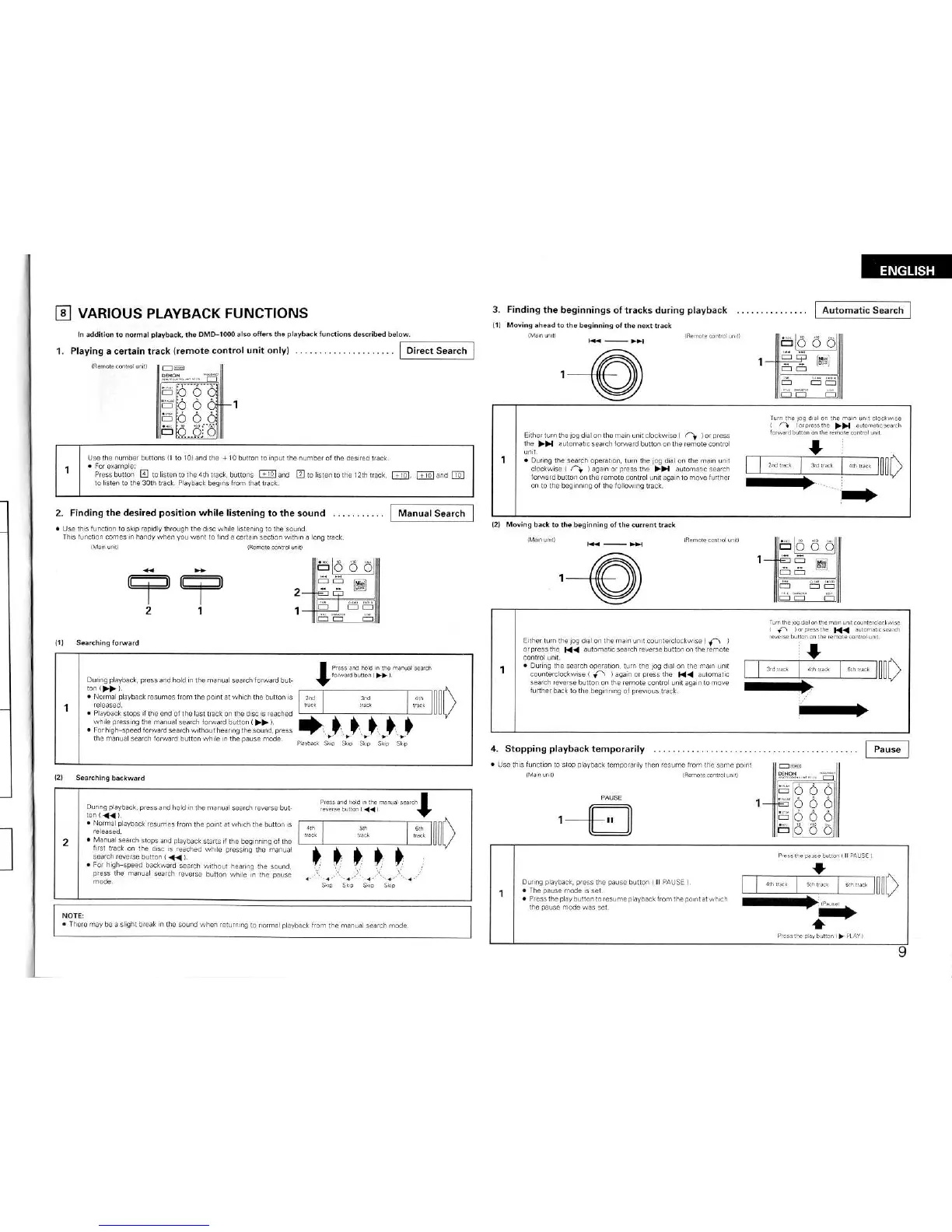 Denon DMD-1000 - Advanced Playback Navigation; Track Search Functions