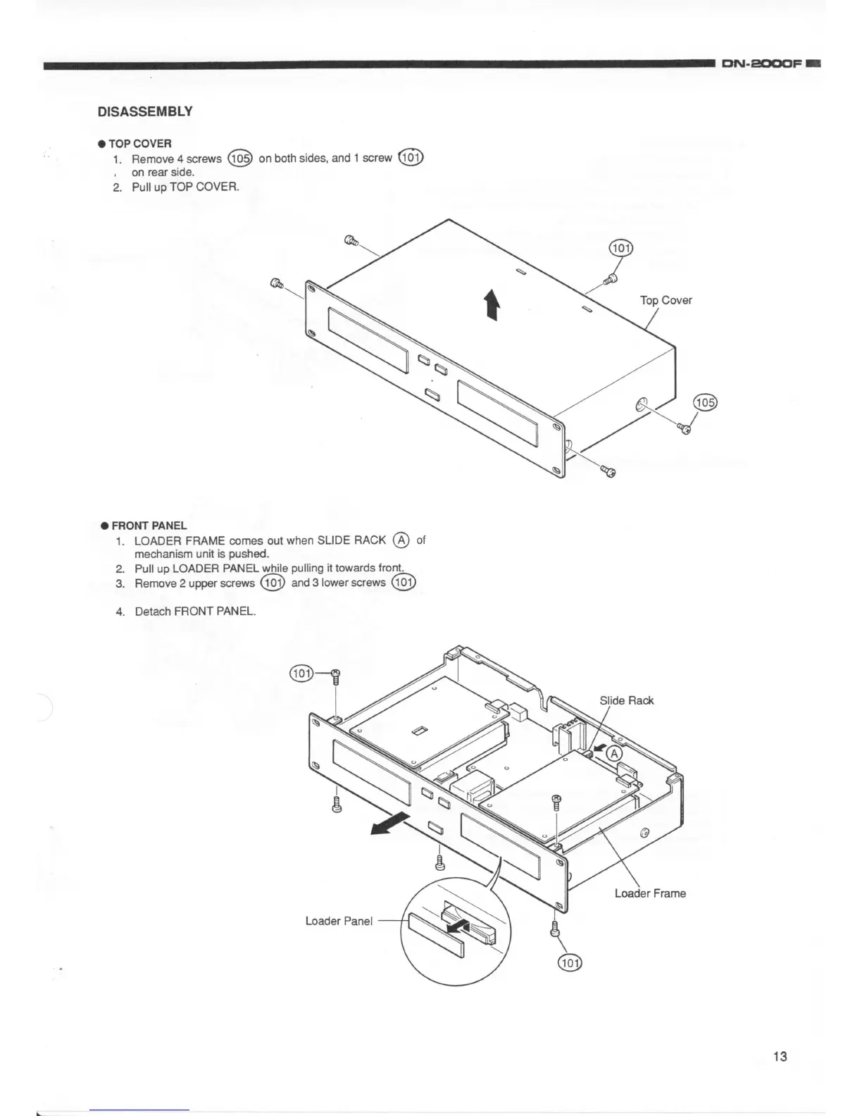 Denon DN-2000F - Disassembly; Top Cover; Front Panel