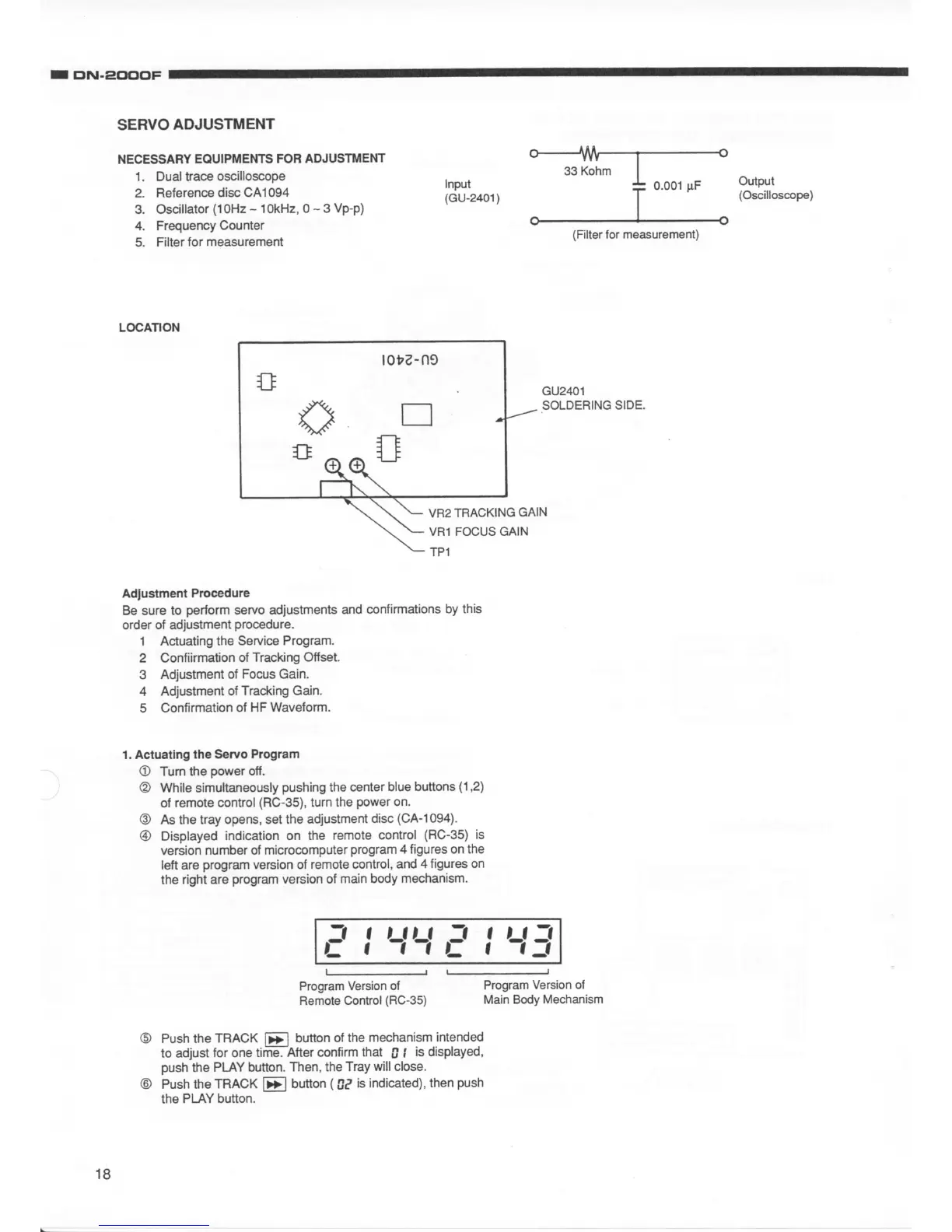 Denon DN-2000F - Servo Adjustment; Necessary Equipments Fob Adjustment; Acuating the Servo Program