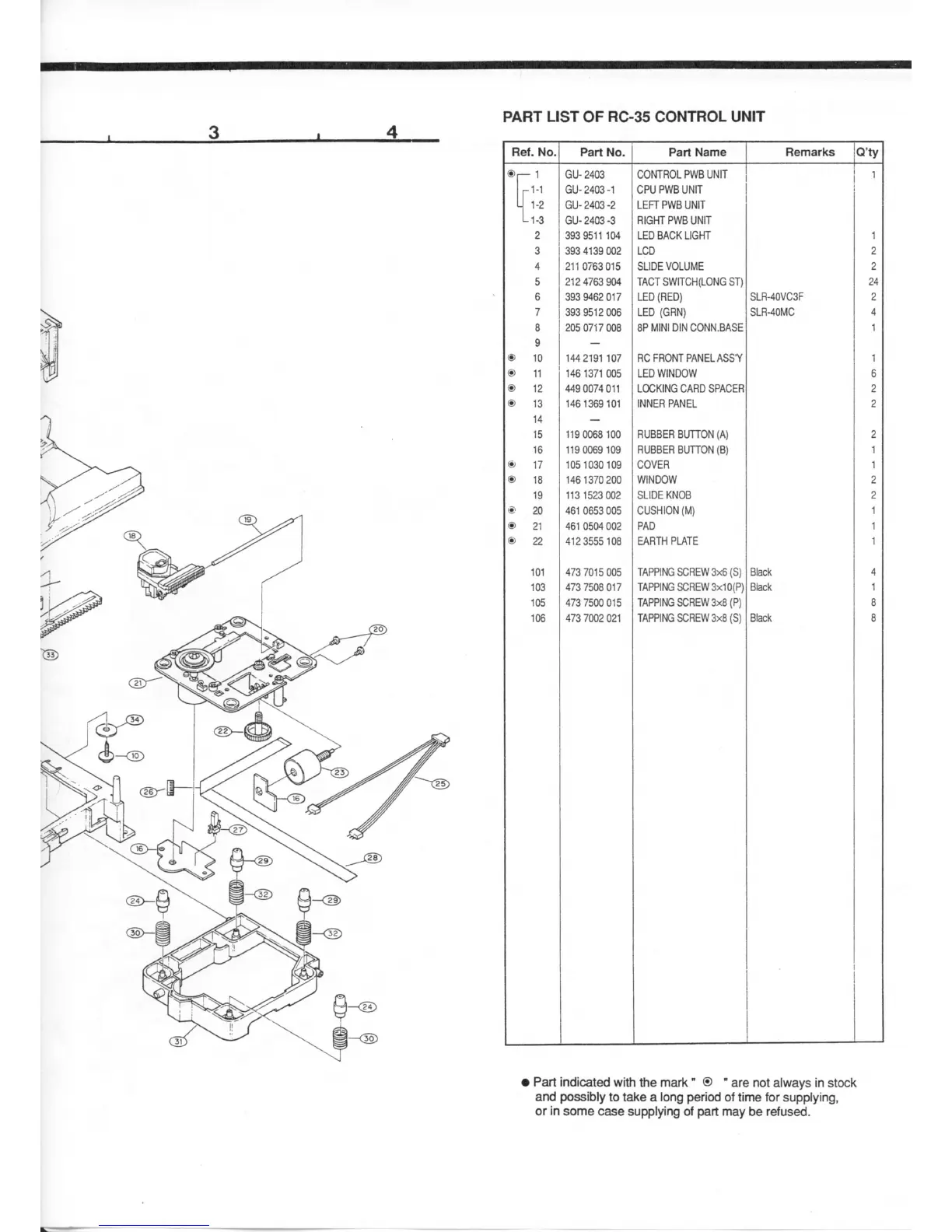 Denon DN-2000F - Part List of Rc-35 Control Unit