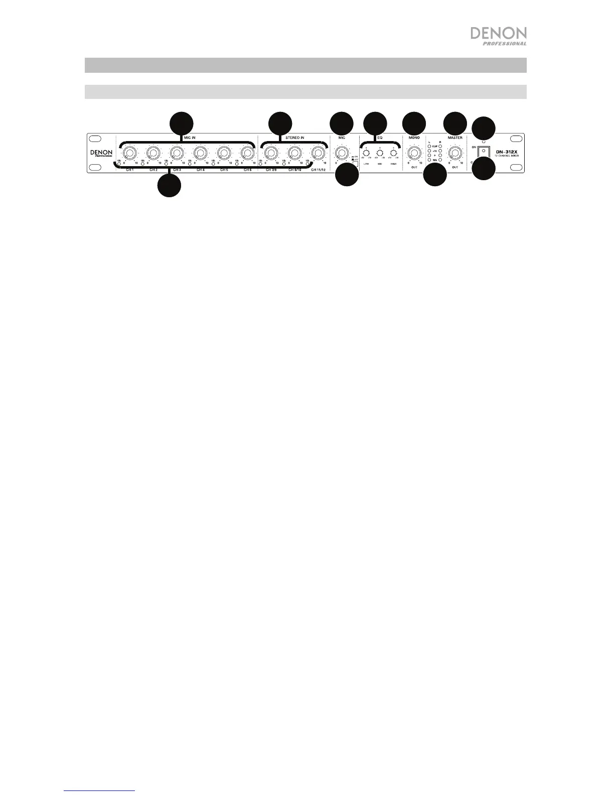 10. Master Level: Turn this knob to adjust the level of the Line Outs, Mono Out, and Rec Out.
