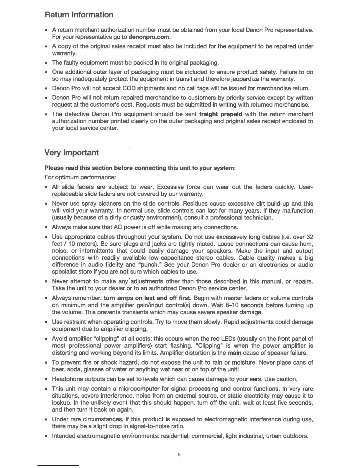 • Denon Pro will not accept COD shipments and no call tags will be issued for merchandise return.