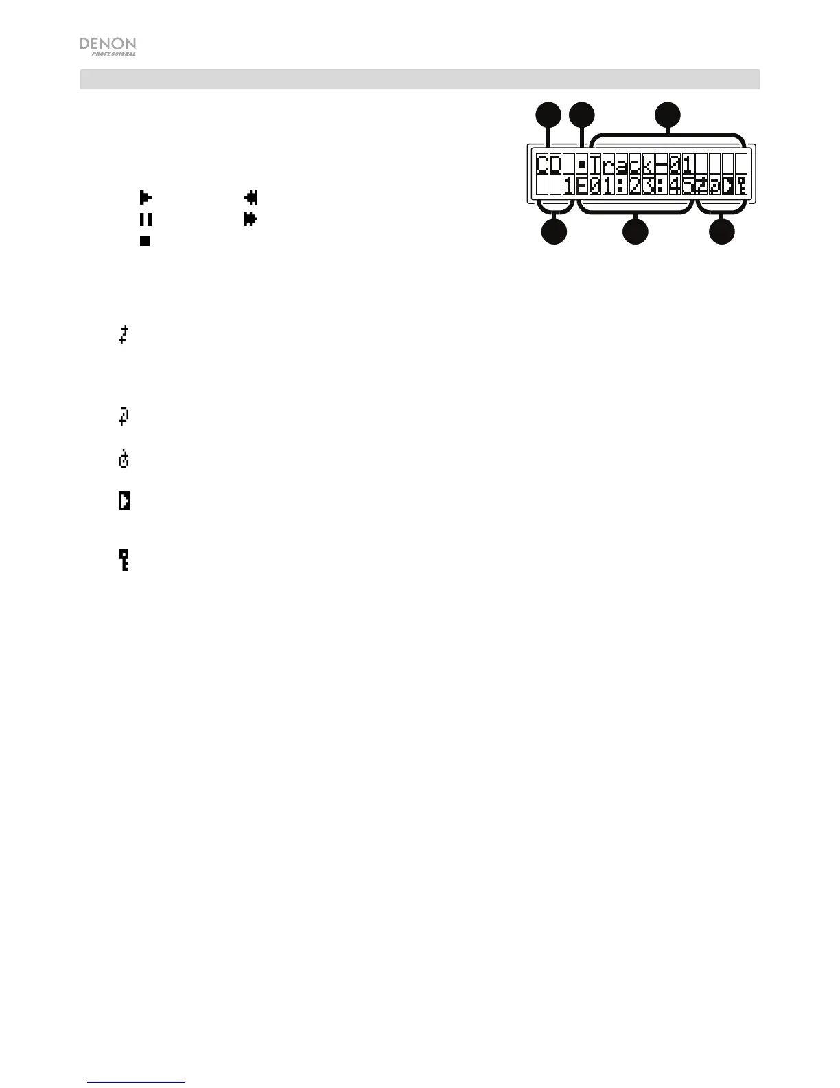 6. Durée : En mode CD et USB, ceci indique le temps écoulé, le temps restant de la piste,