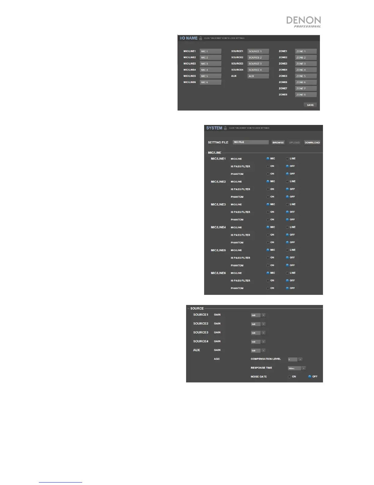 • Source: Click each Gain menu to set the gain