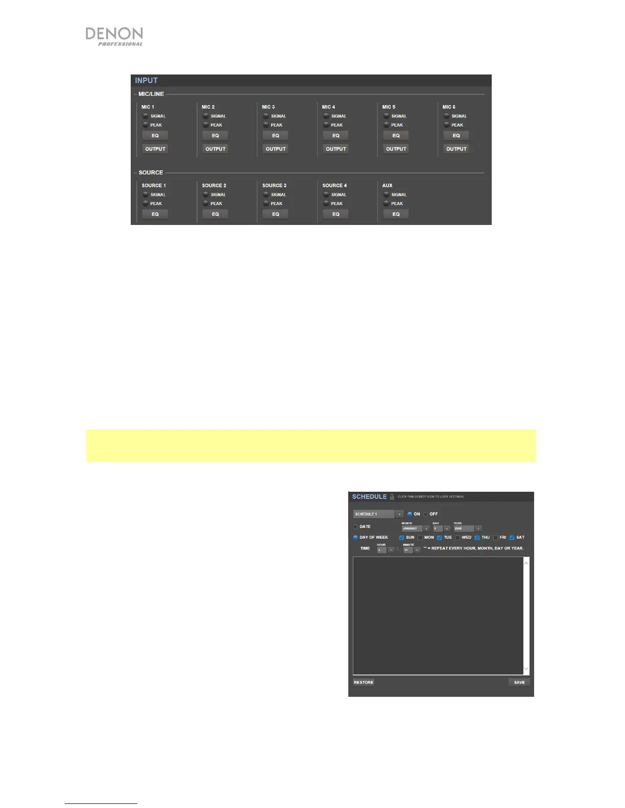 Haga clic en el botón Input en la parte superior para visualizar la página de entrada en la cual puede ajustar