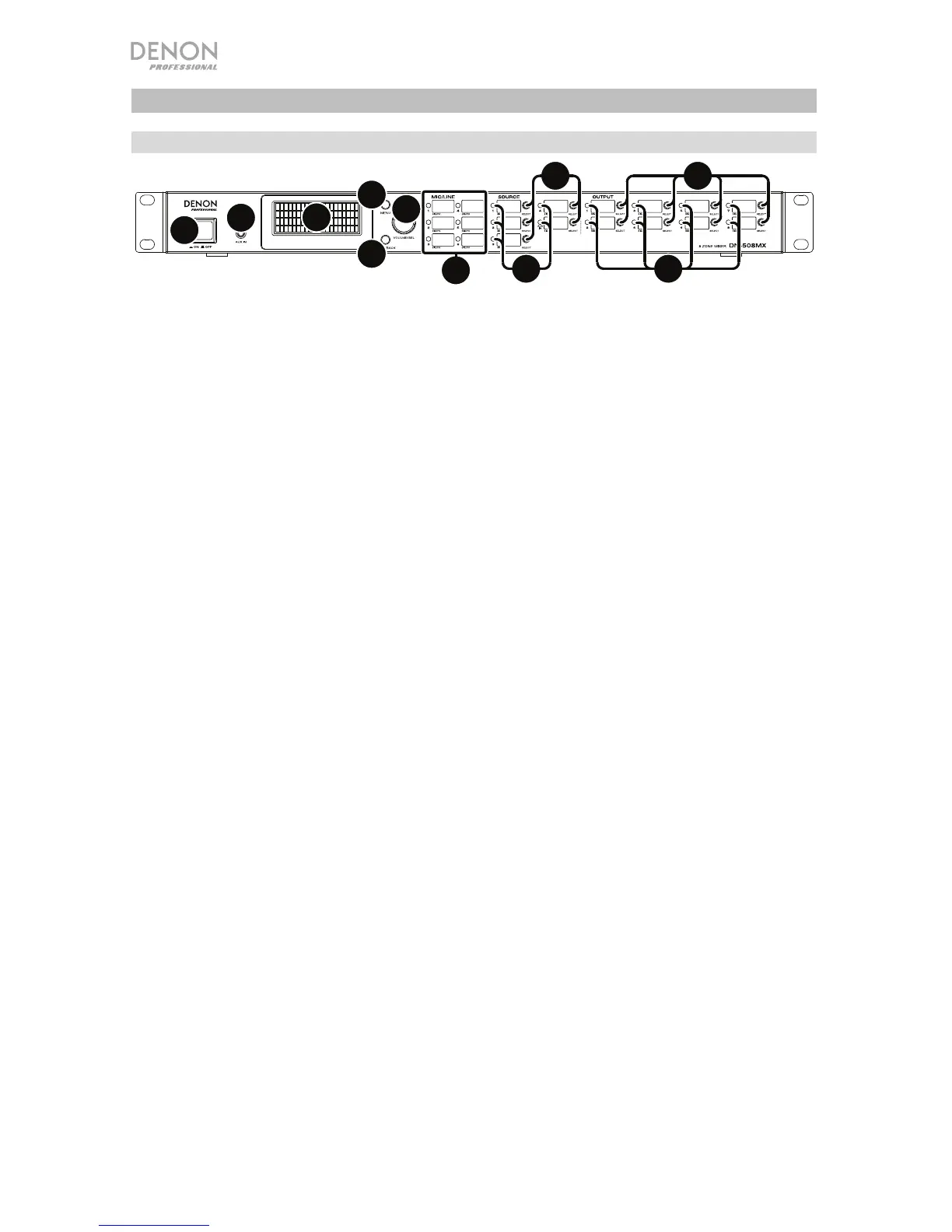 11. Selettori di uscita: premere uno di questi tasti per selezionare la zona. Il tasto per la zona