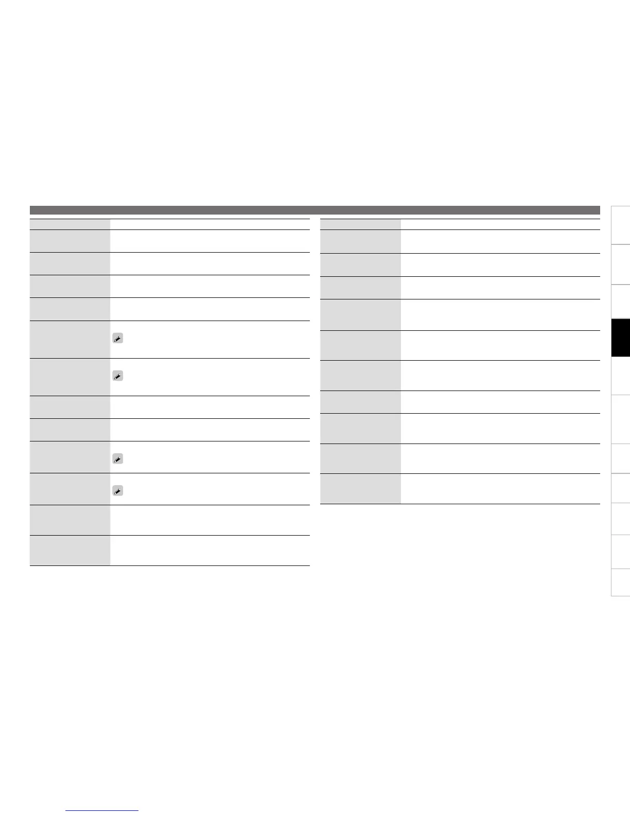 Setting Items Setting details (Items in bold are factory default)
