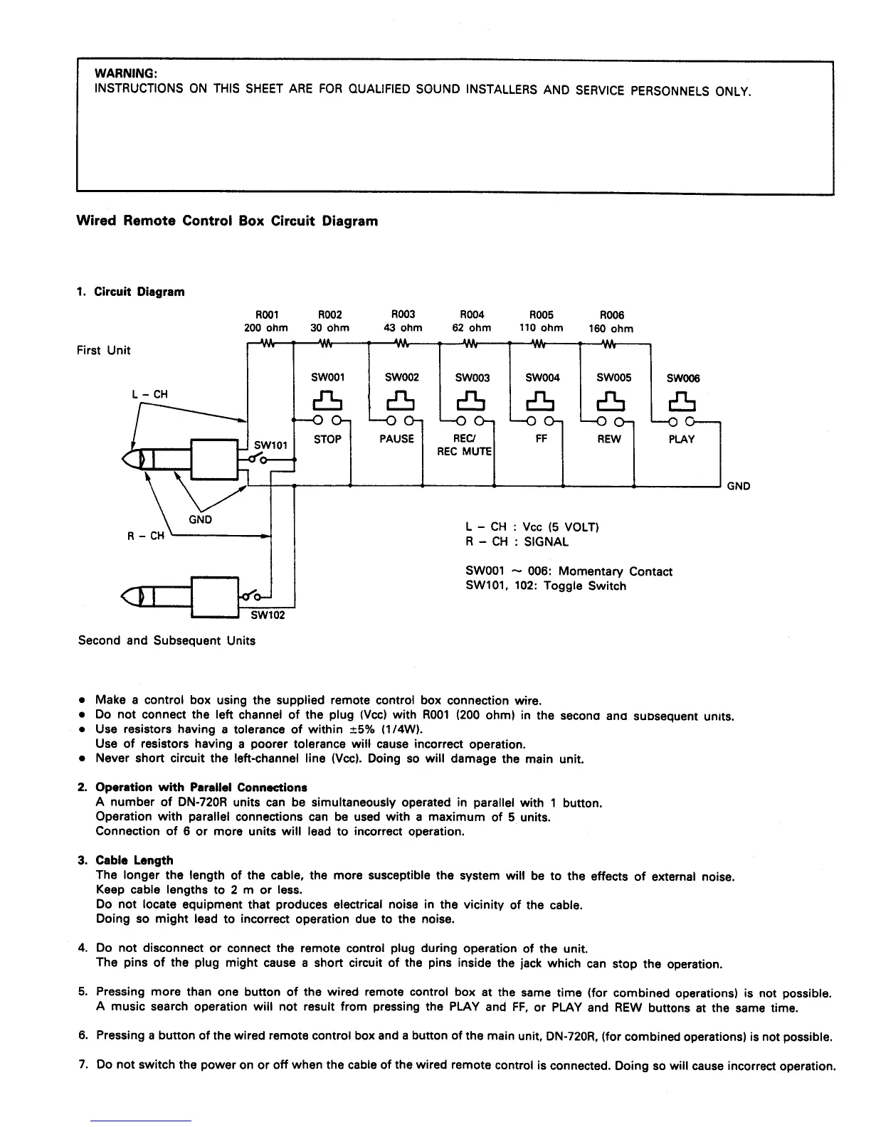 Denon DN-720R - Wired Remote Control Box Circuit Diagram; Circuit Diagram; Operation with Parallel Connections