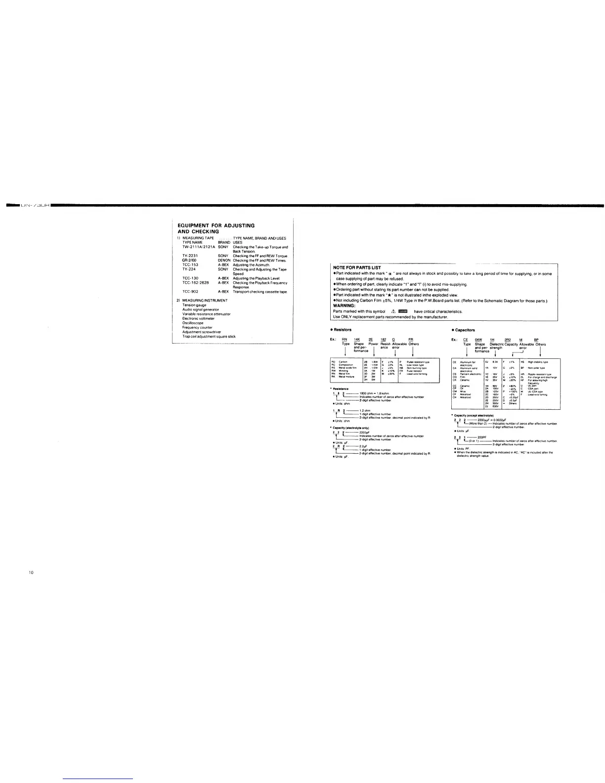 eNot including Carbon Film :!:5%, 1/4W Type in the P.W.Board parts list. (Refer to the Schematic Diagram for those parts.)