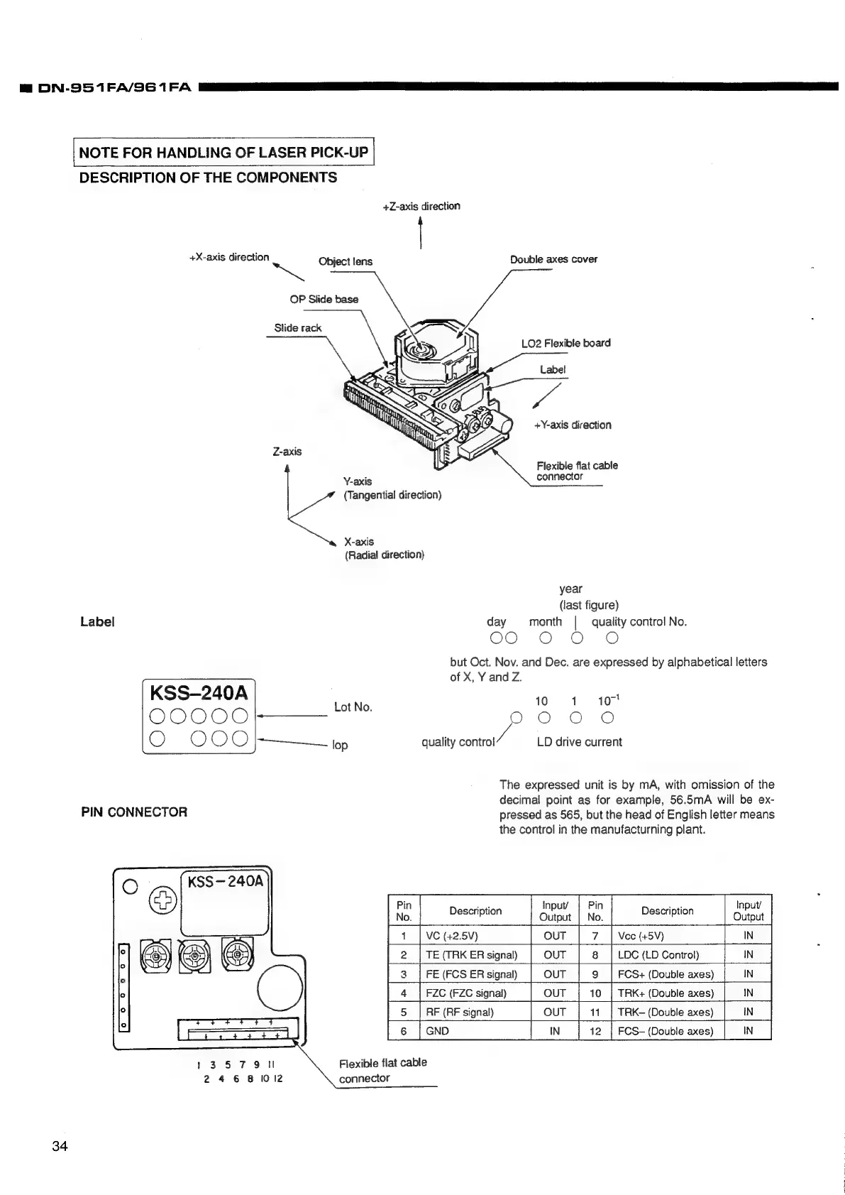 Denon DN-961FA - Laser Pick-up Handling Notes; Laser Pick-up Component Identification
