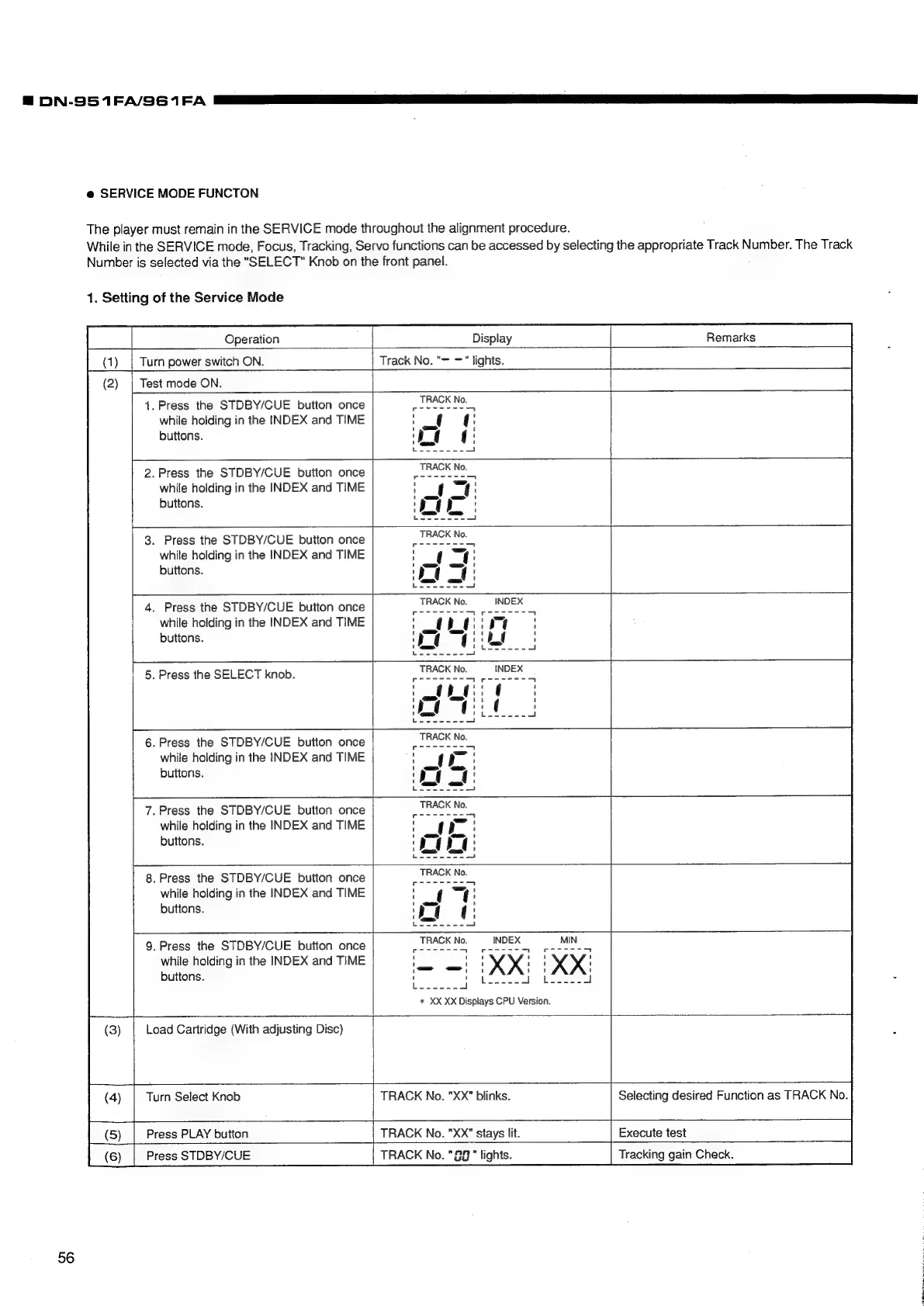 Denon DN-961FA - Service Mode Operations; Entering and Setting Service Mode; Service Mode Functions