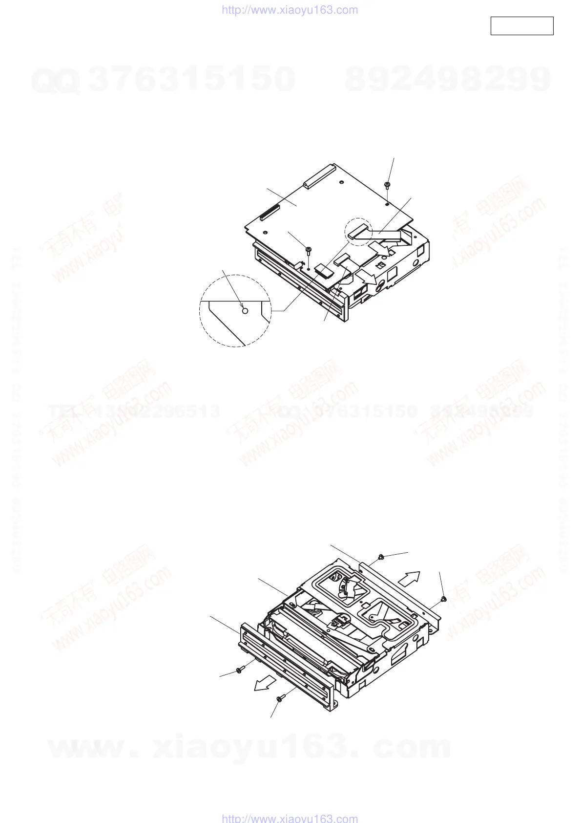 (2) Remove 2 screws 53 and pull out Disc Guide.