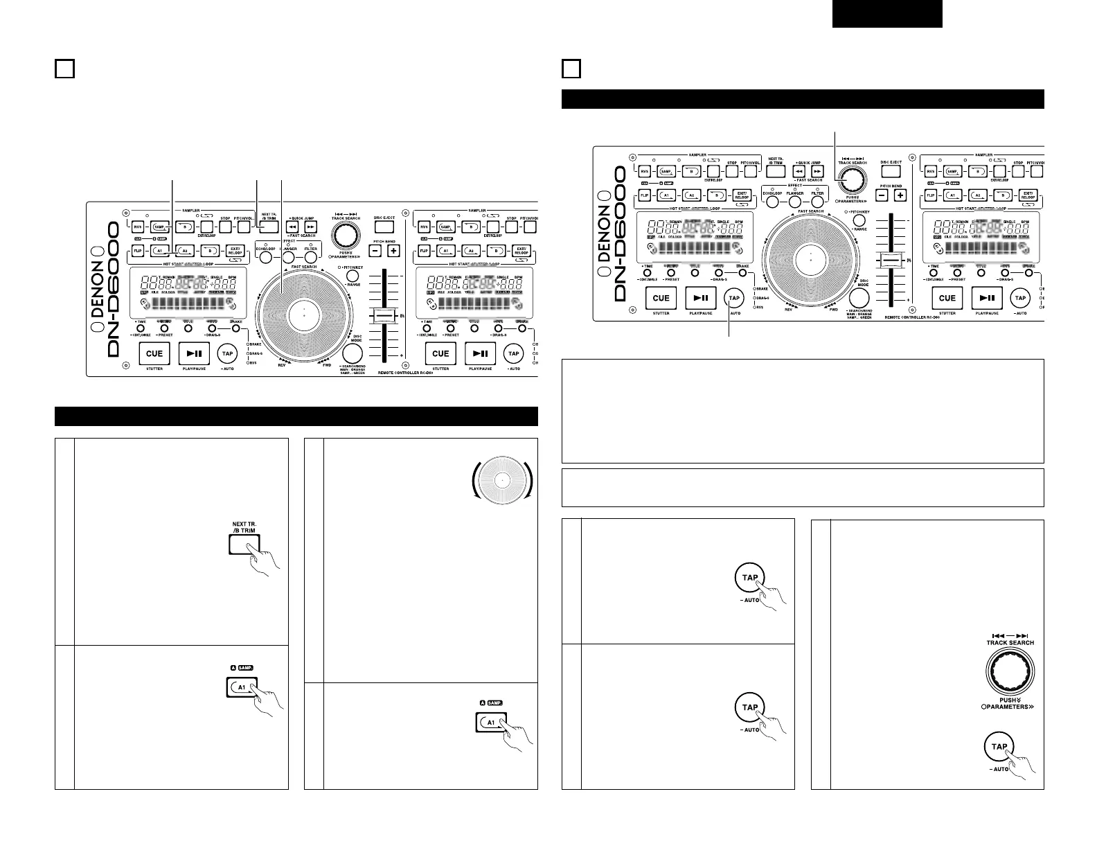 • Lorsque Auto BPM COUNTER est désactivé, le fait d’enfoncer la touche TAP pendant 1 seconde, réactivé
