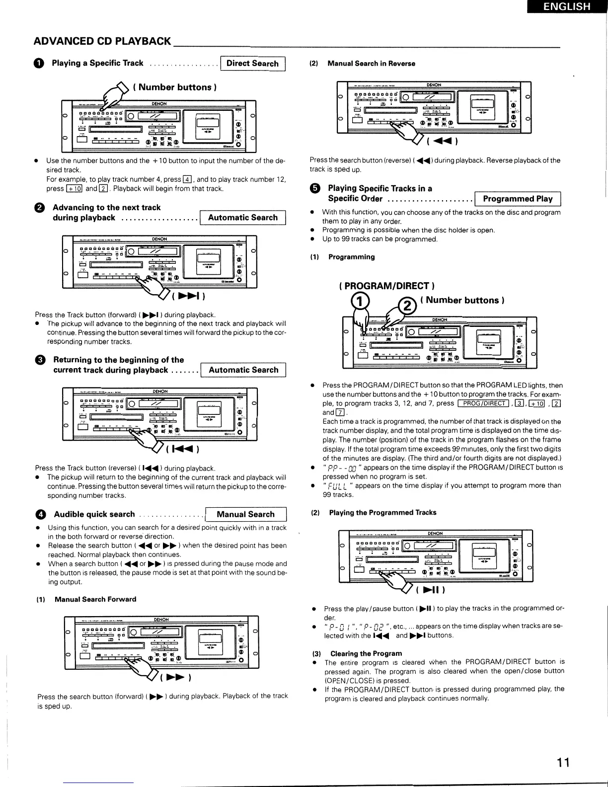 Denon DN-T620 - Advanced CD Playback; Track Selection and Search; Programmed and Random Playback