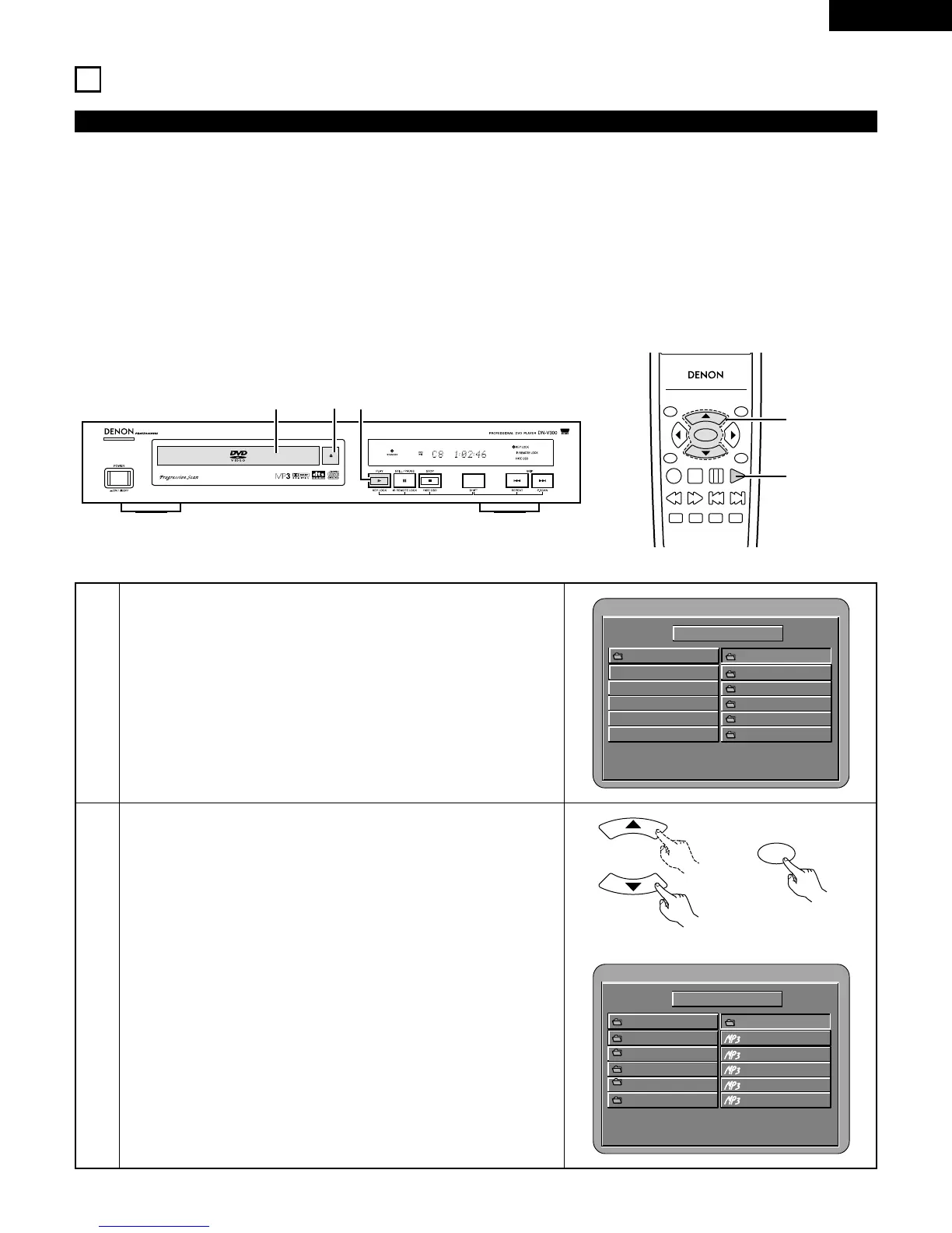 Load the CD-R/RW disc on which the MP3 format music files have been