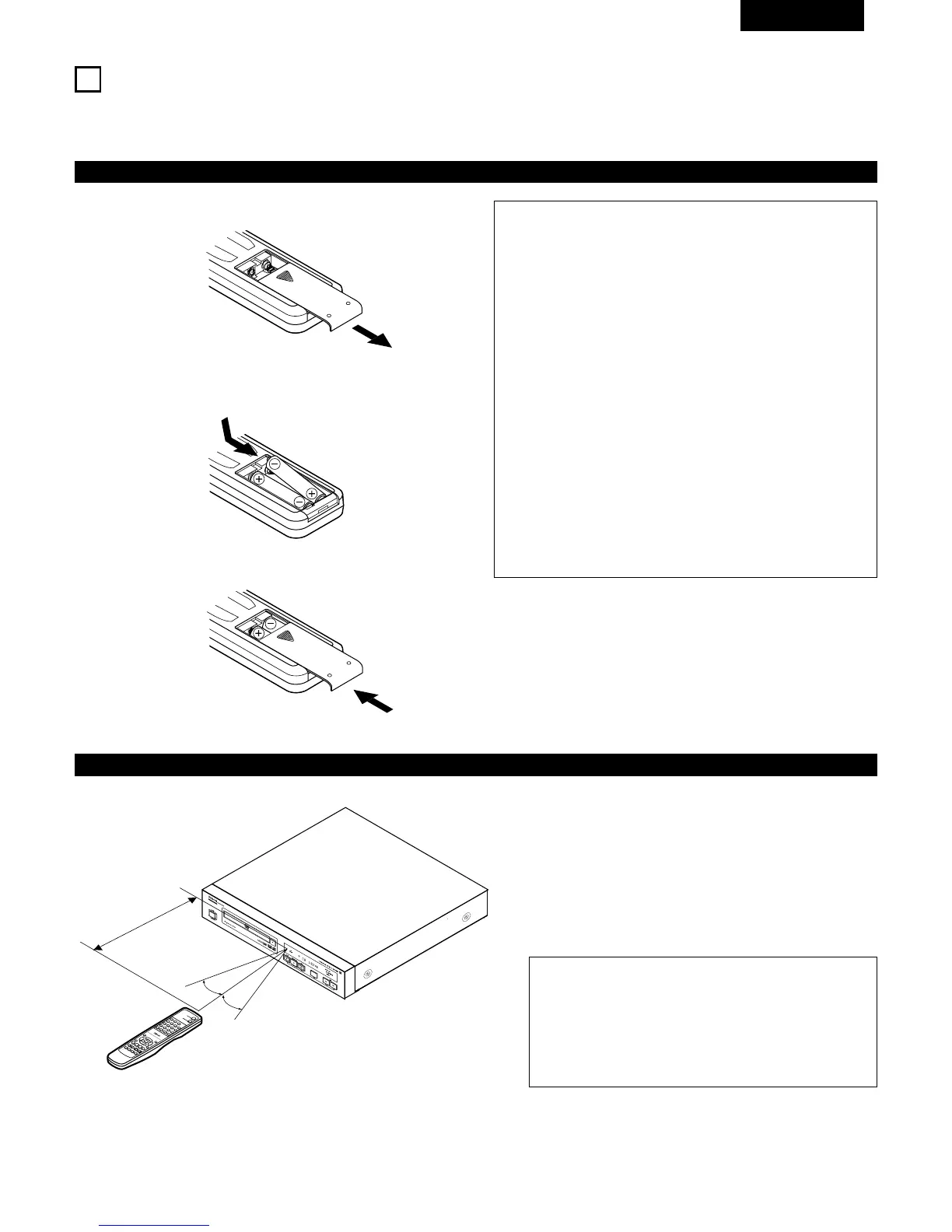 • Enlever les piles si la télécommande ne va pas être utilisée