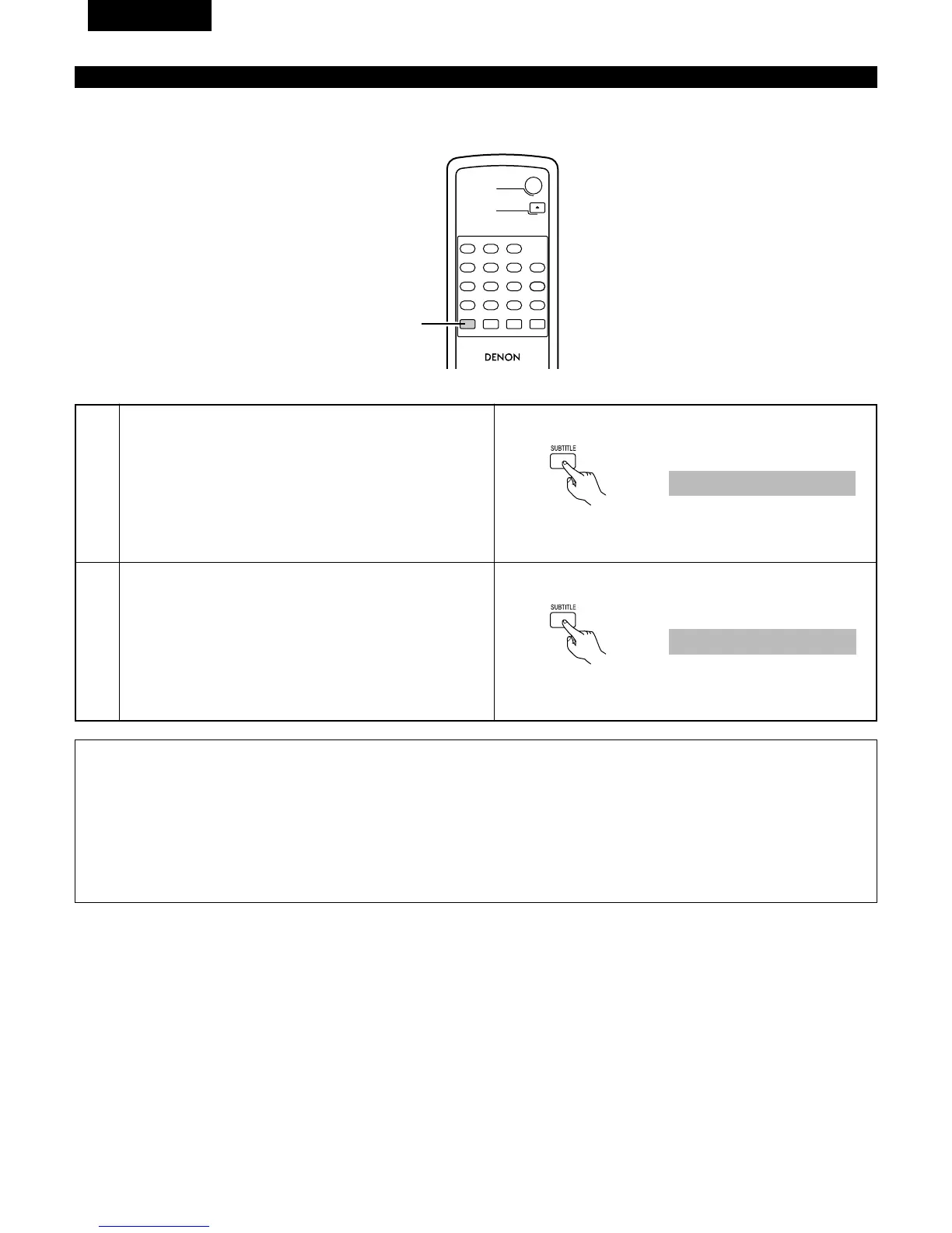2 Avec les DVD contenant des signaux de langue multi sous-titres, la langue des sous-titres peut être modifiée en cours de lecture.