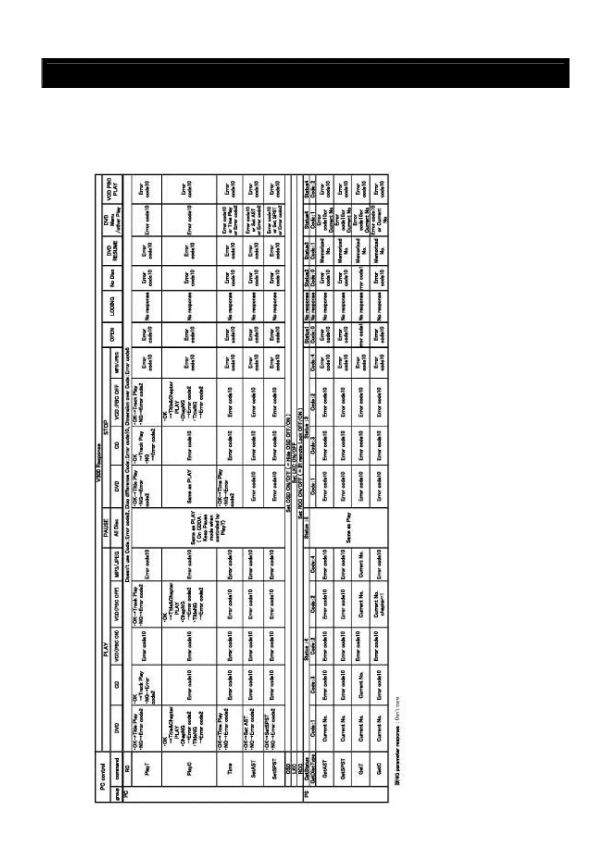 The DN-V310 issues the responses shown below with respect to the PR and PS group commands in