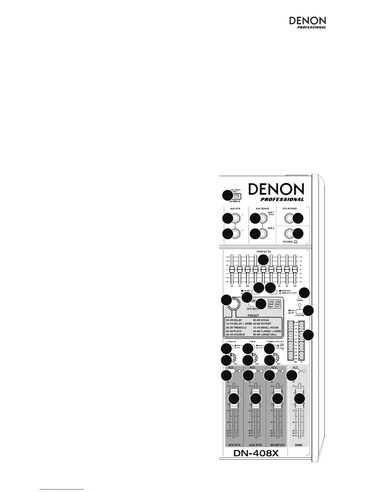 12. DFX Knob: Adjusts the post-fader level of the signal sent to the mixer’s effects