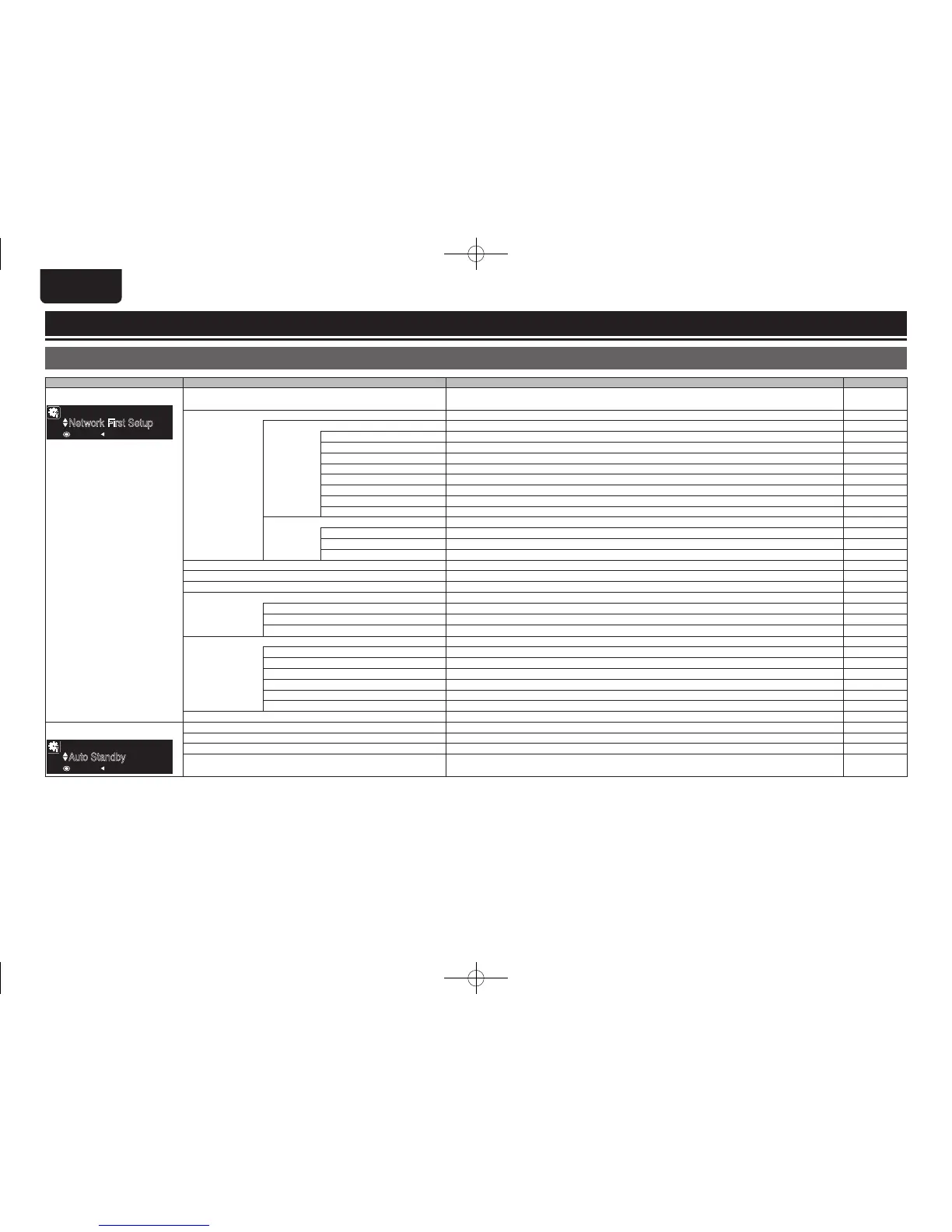 Network Standby Performs the ON/OFF settings for the network function when in standby mode. 25