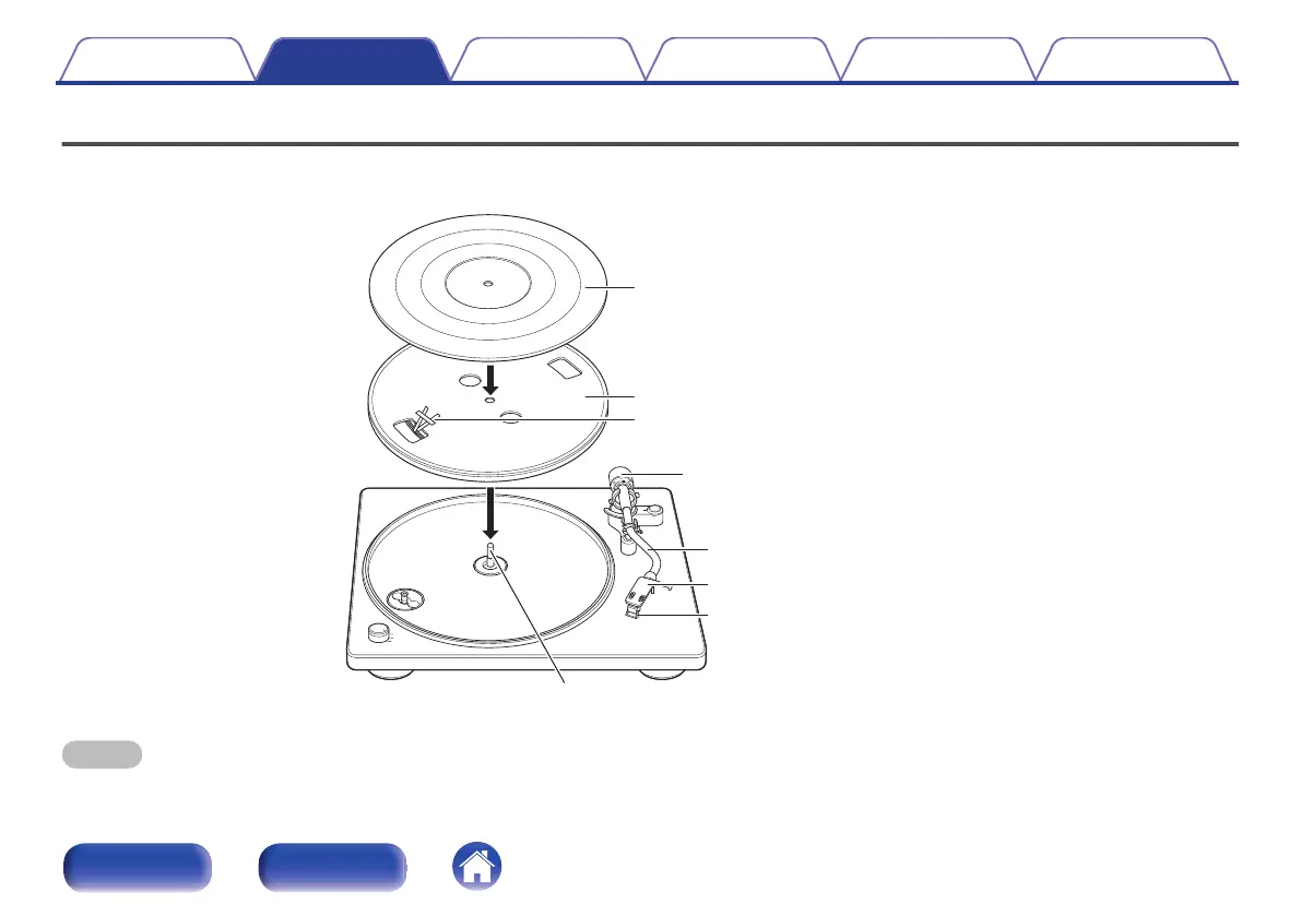 Make sure to perform setup on a stable, even surface to prevent the influence of vibration or slanted angles on record playback.