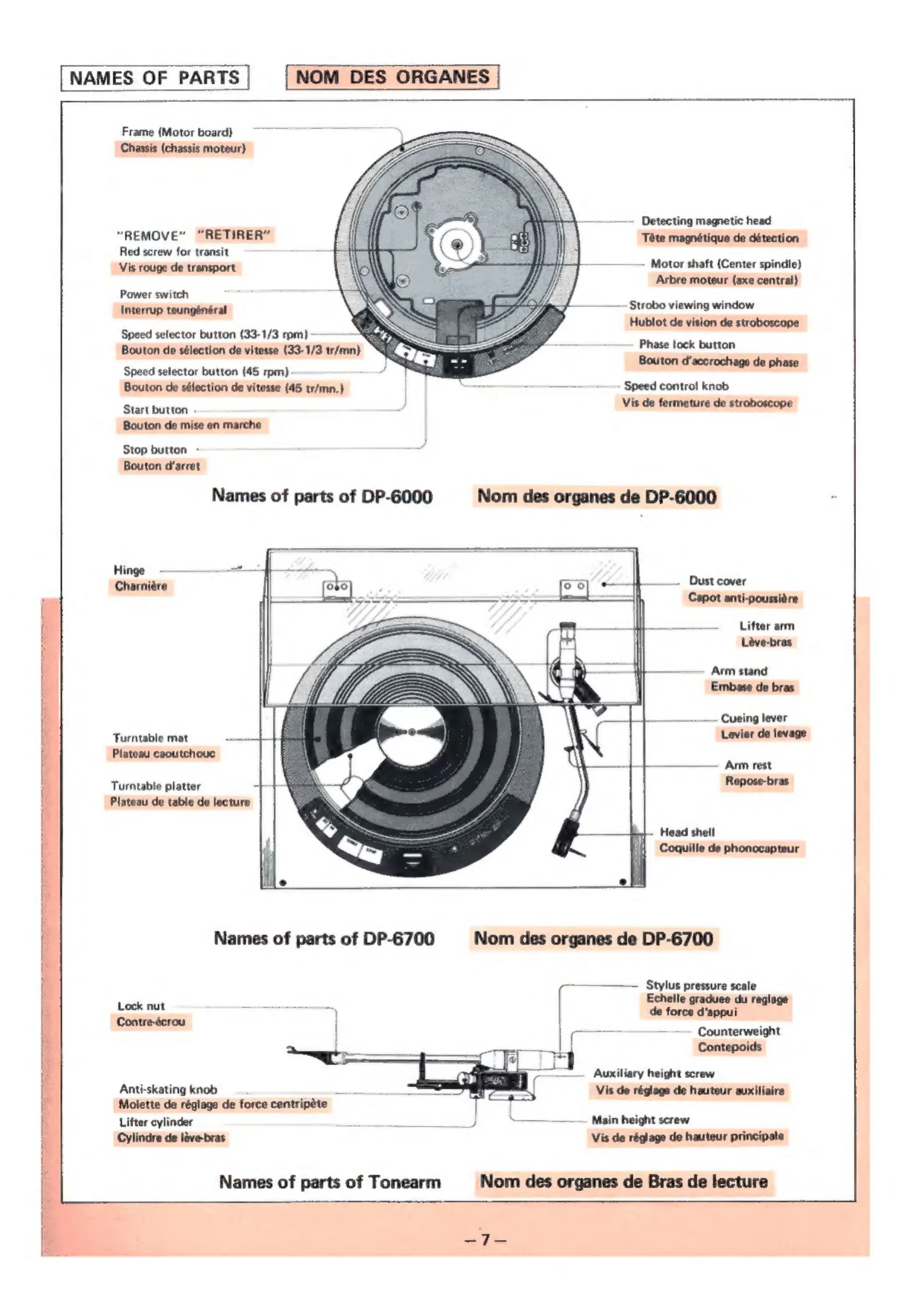 Denon DP-6000 - Names of Parts