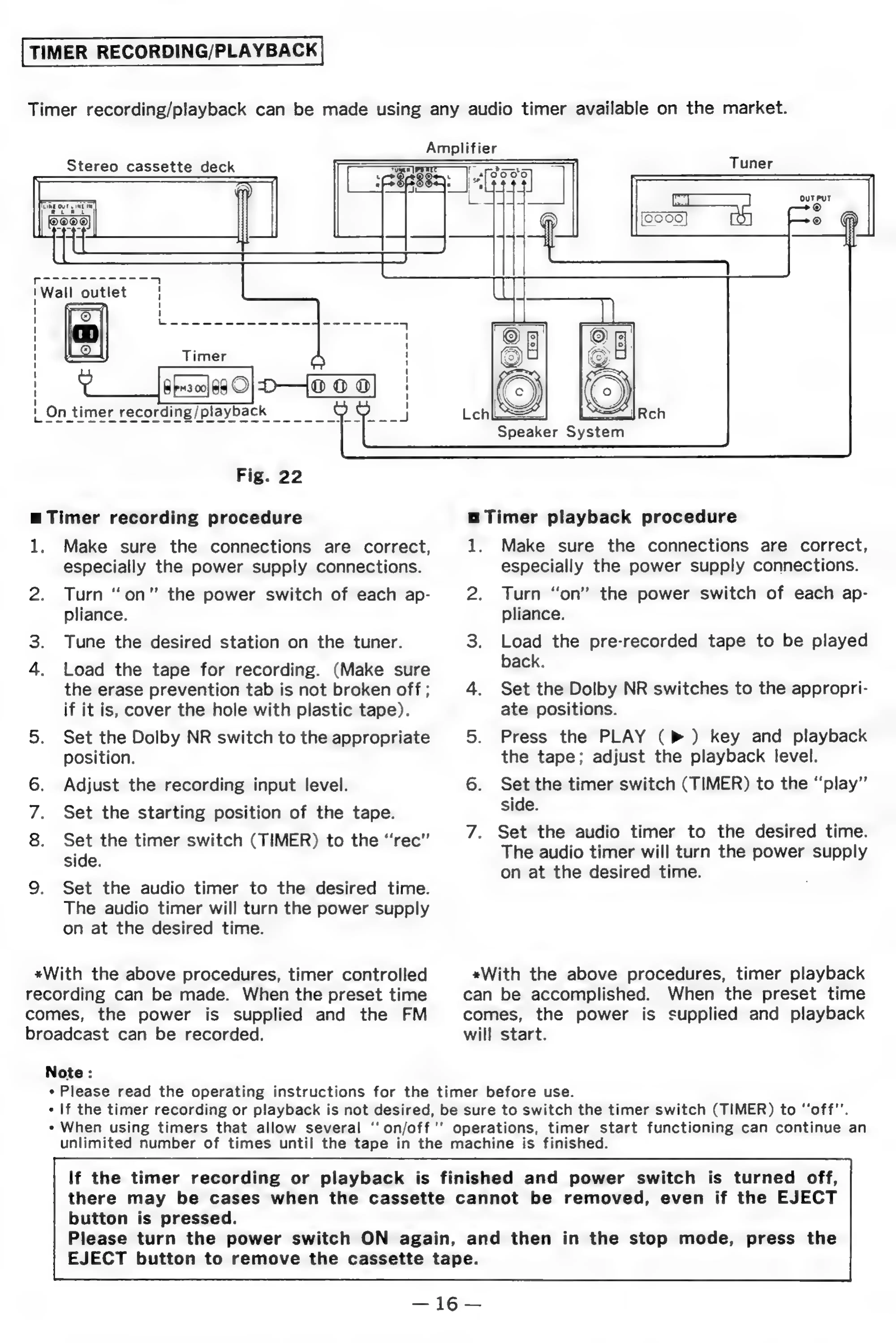 Denon DR-M11 - Timer Recording and Playback; Timer Recording Procedure; Timer Playback Procedure