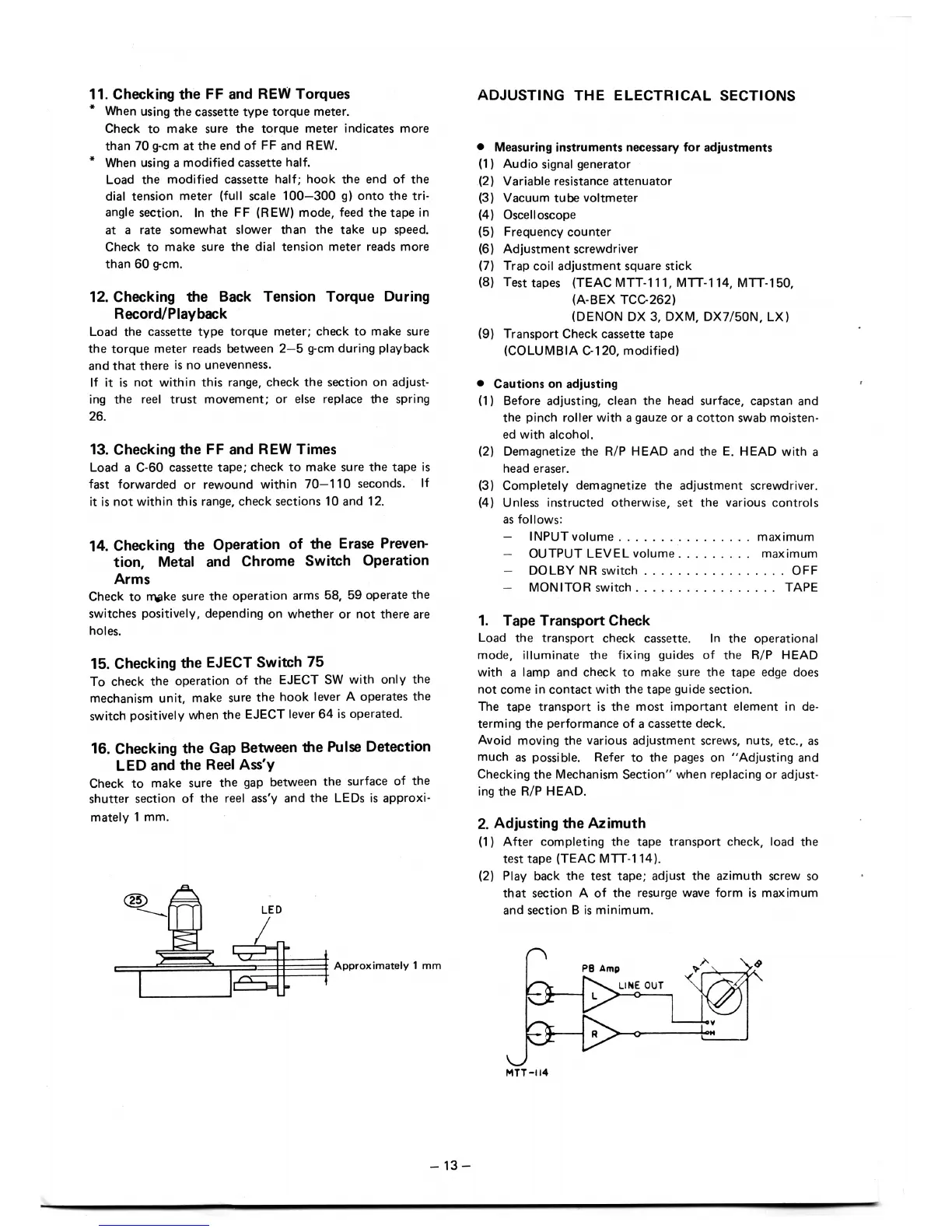 Denon DR-M2 - ELECTRICAL SECTIONS ADJUSTMENTS; Tape Transport Check; Adjusting the Azimuth