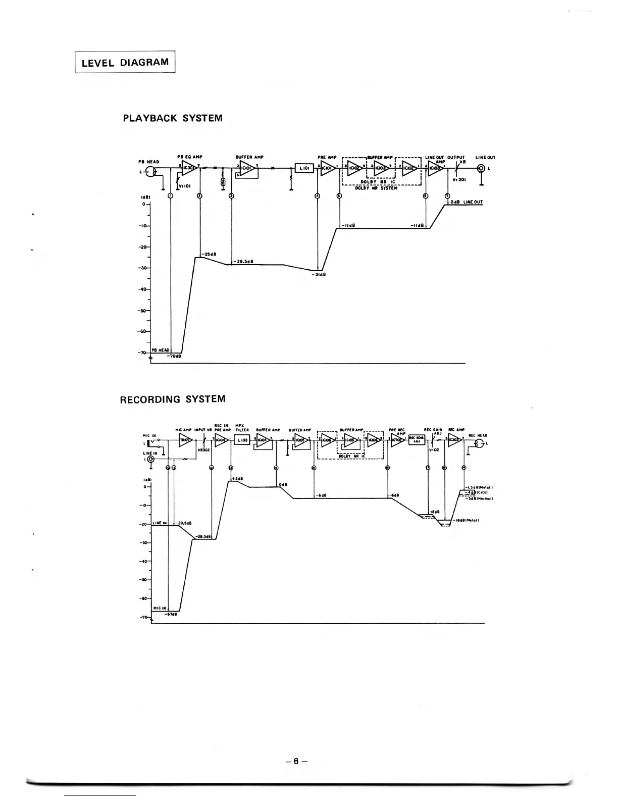Denon DR-M2 - LEVEL DIAGRAM; PLAYBACK SYSTEM; RECORDING SYSTEM