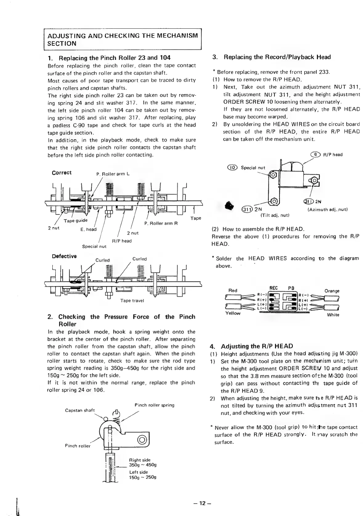 Denon DR-M22 - Maintenance and Adjustments; Mechanism Section Adjustments and Checks