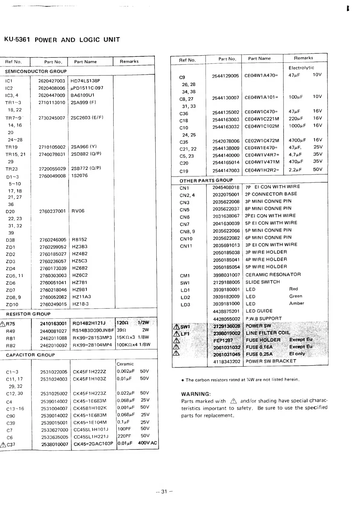 Denon DR-M22 - Parts List - Power and Logic Unit