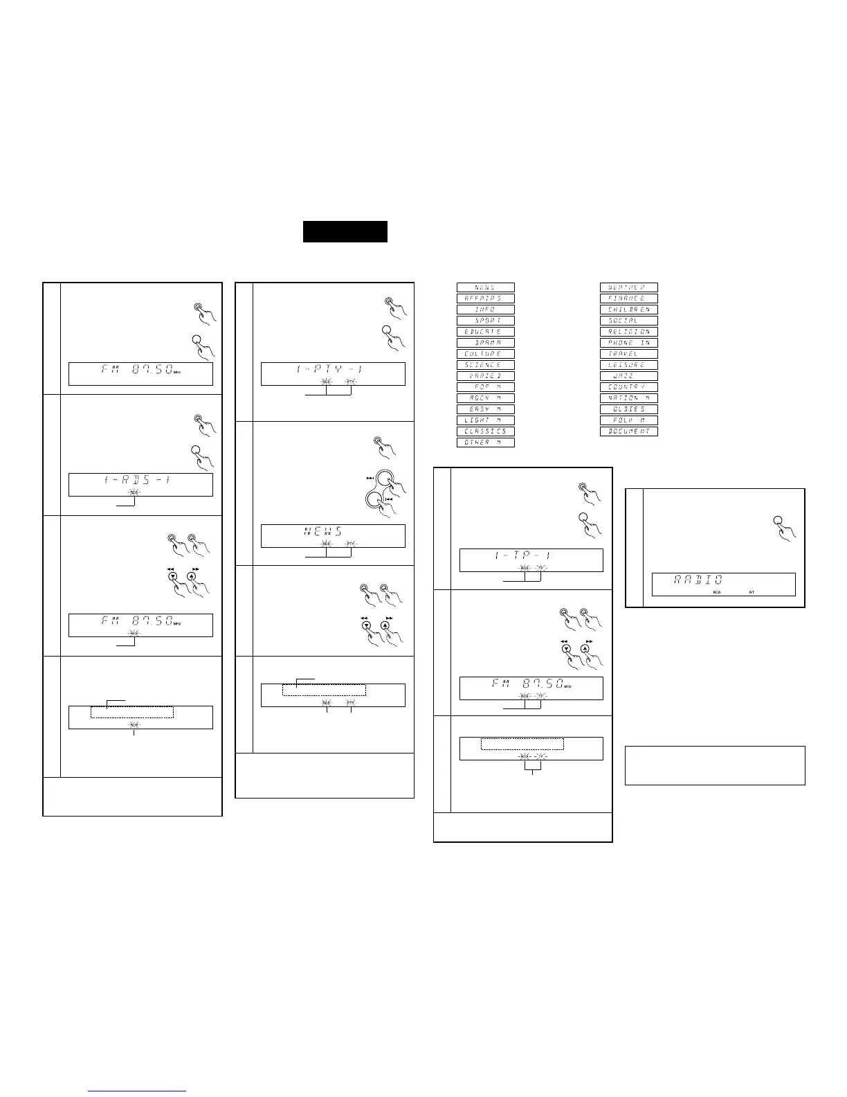 (”PTY“ en ”RDS“ knipperen;”, PTY