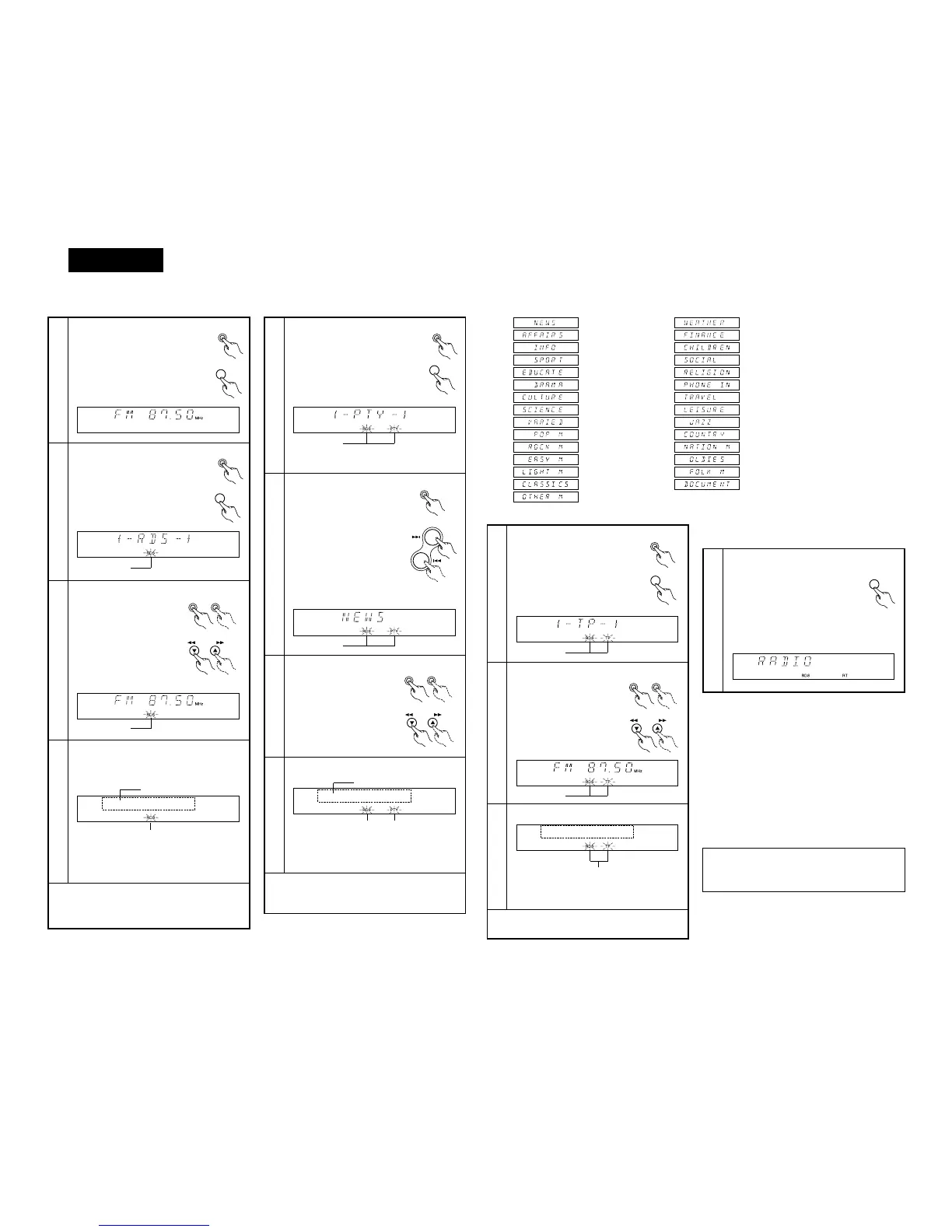 (Meldungen “PTY” und “RDS” blinken, im