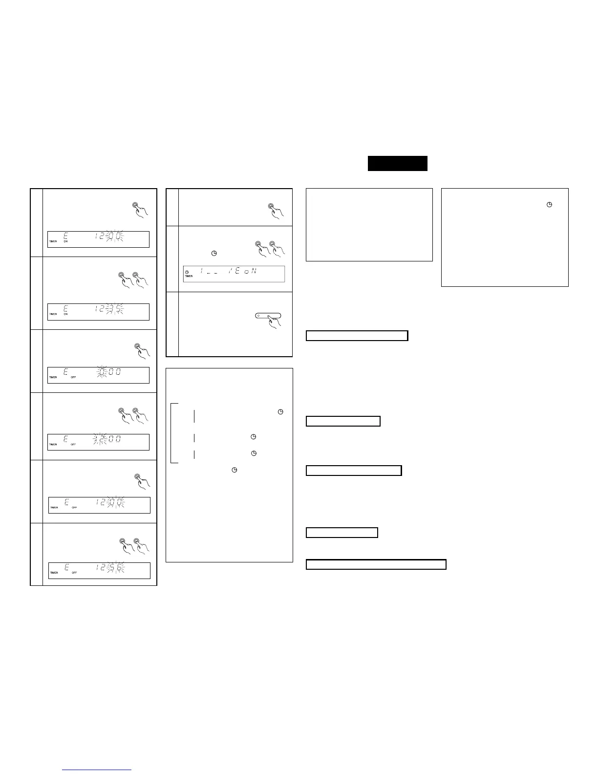 TUNER) la banda de recepción y el número de canal prefijado, la hora de activación del temporizador, la hora de