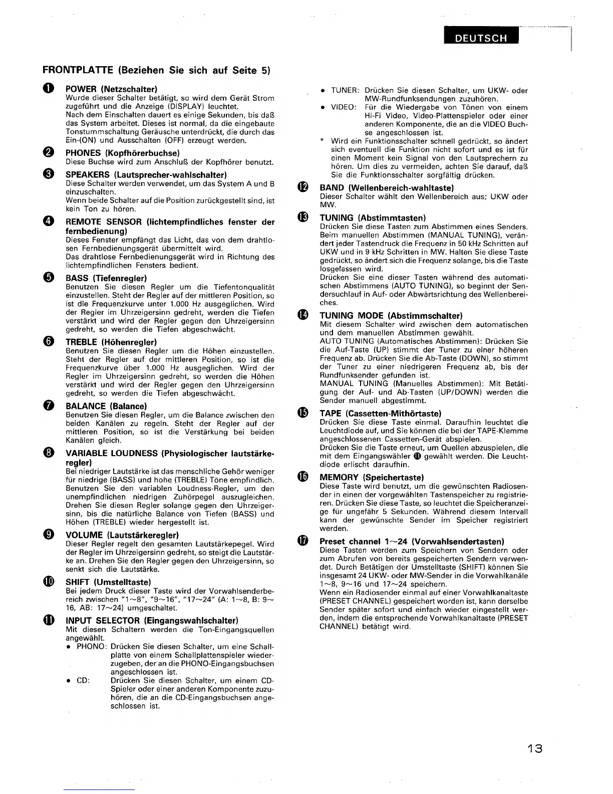 Denon DRA-345R - Front Panel Controls; Power, Audio Adjustments, and Tuning; Preset Station Functions