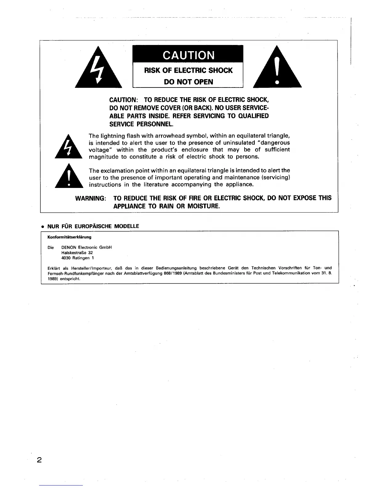 Denon DRA-345R - Safety and Precautions; Electrical Shock Warnings; General Appliance Warnings