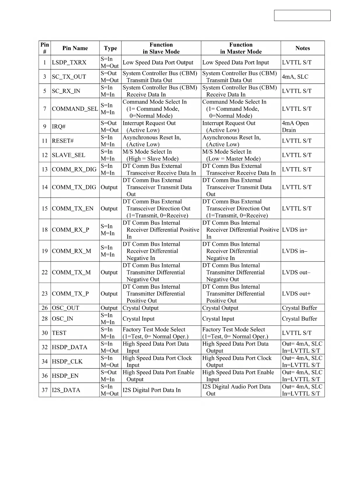 F2602-1 XMDTIC Pin Descriptions