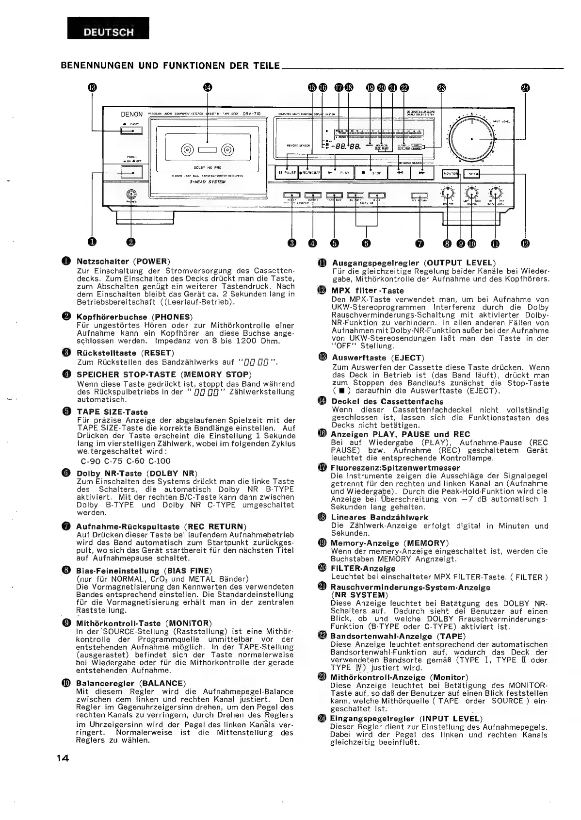Denon DRM-710 - Benennungen und Funktionen der Teile