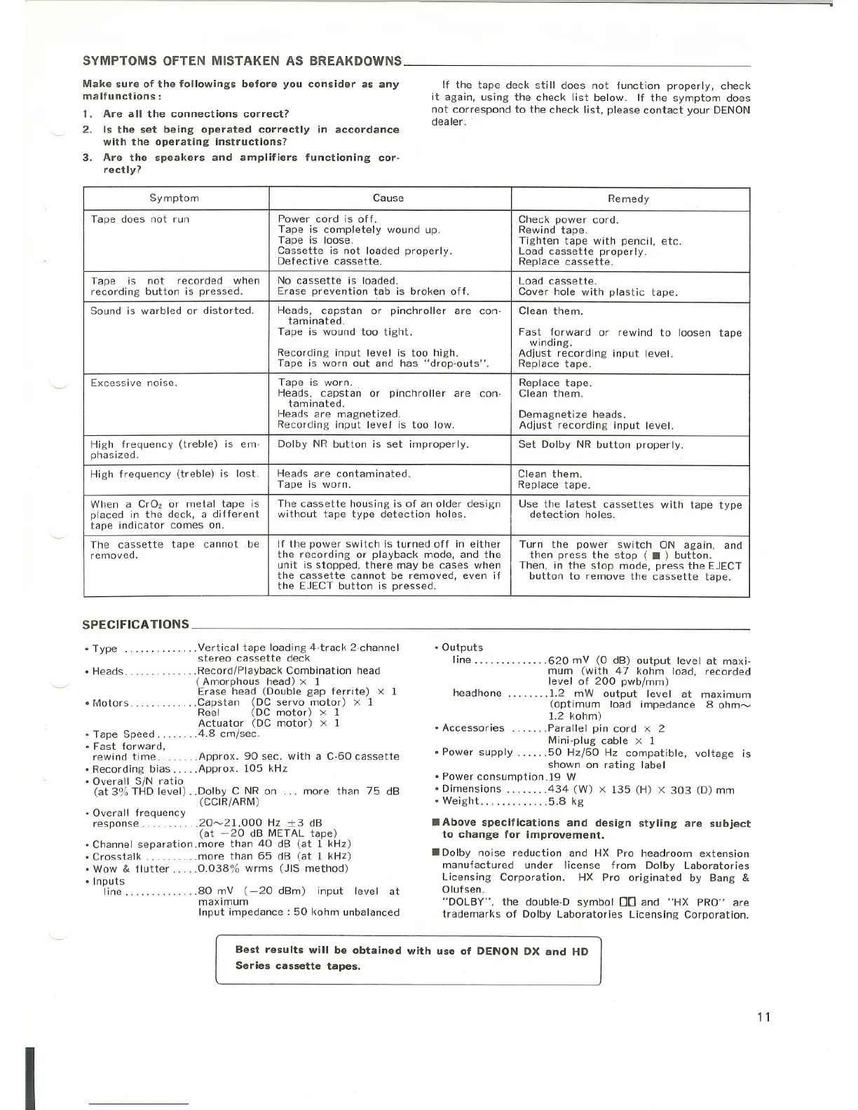 "DOLBY", the double·D symbol DD and "HX PRO" are