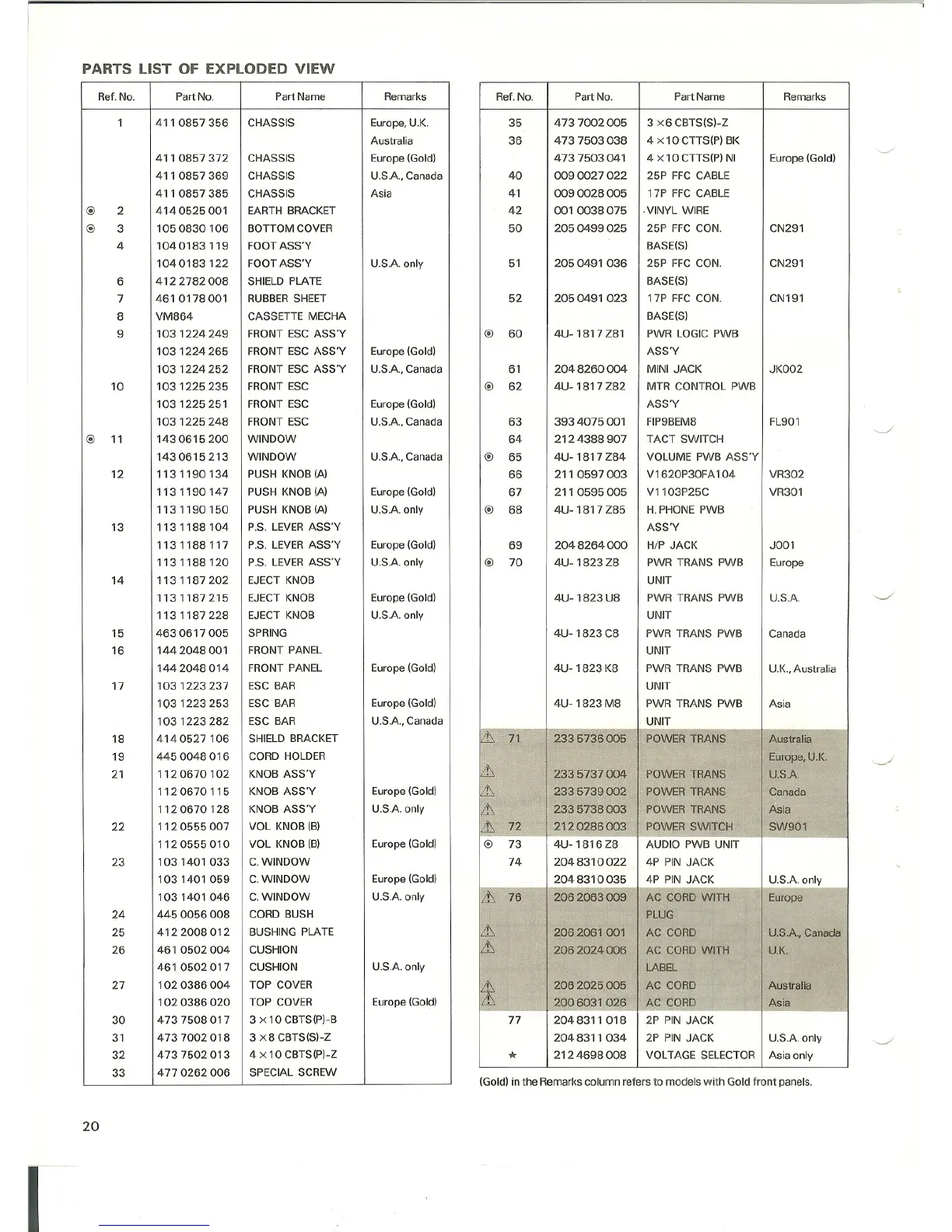 (Gold) in the Remarks column refers to models with Gold front panels.