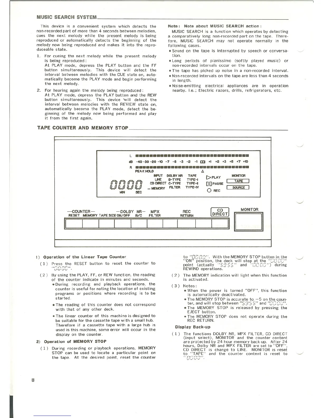 ( 1) The functions DOLBY NR, MPX FILTER, CD DIRECT