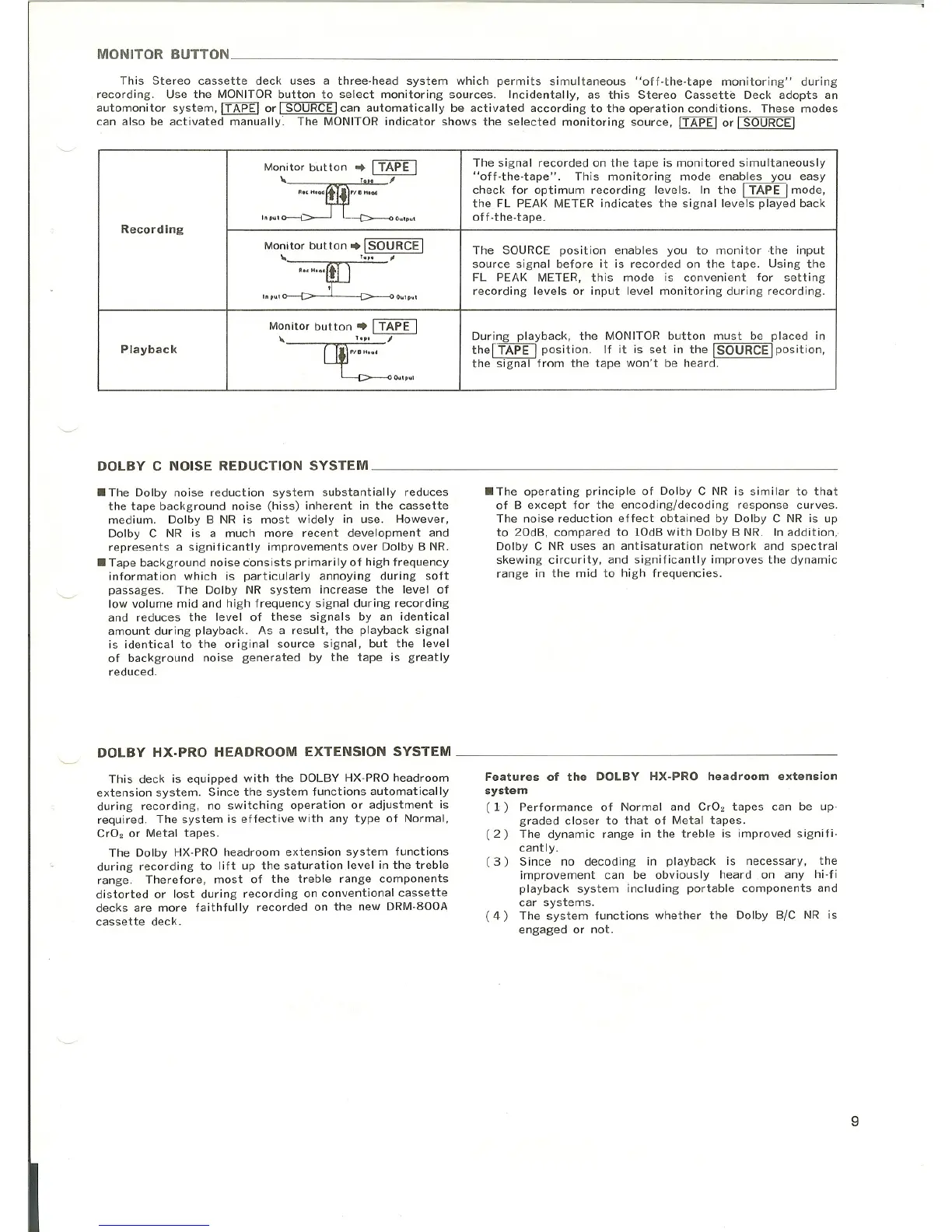 recording. Use the MONITOR button to select monitoring sources. Incidentally, as this Stereo Cassette Deck adopts an