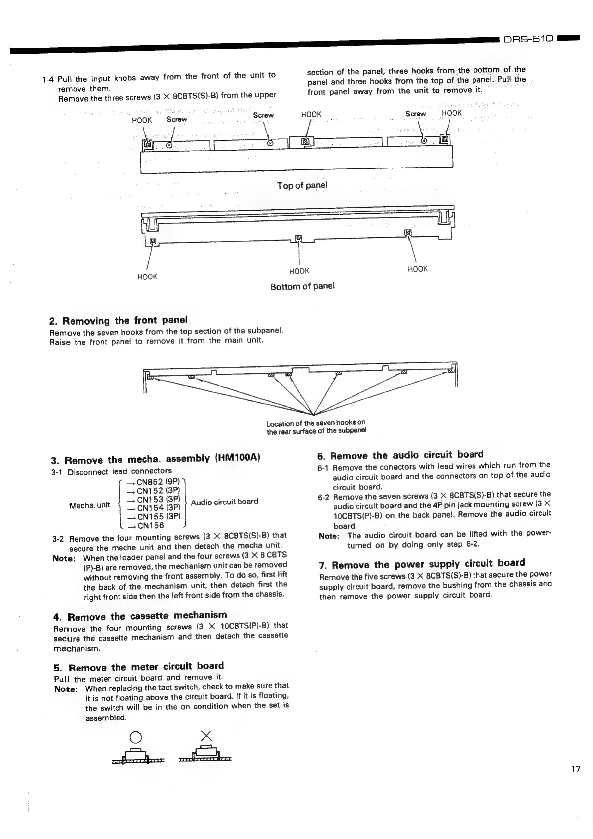 Denon DRS-810 - Disassembly Procedures; External Panel and Knob Removal; Internal Component Removal